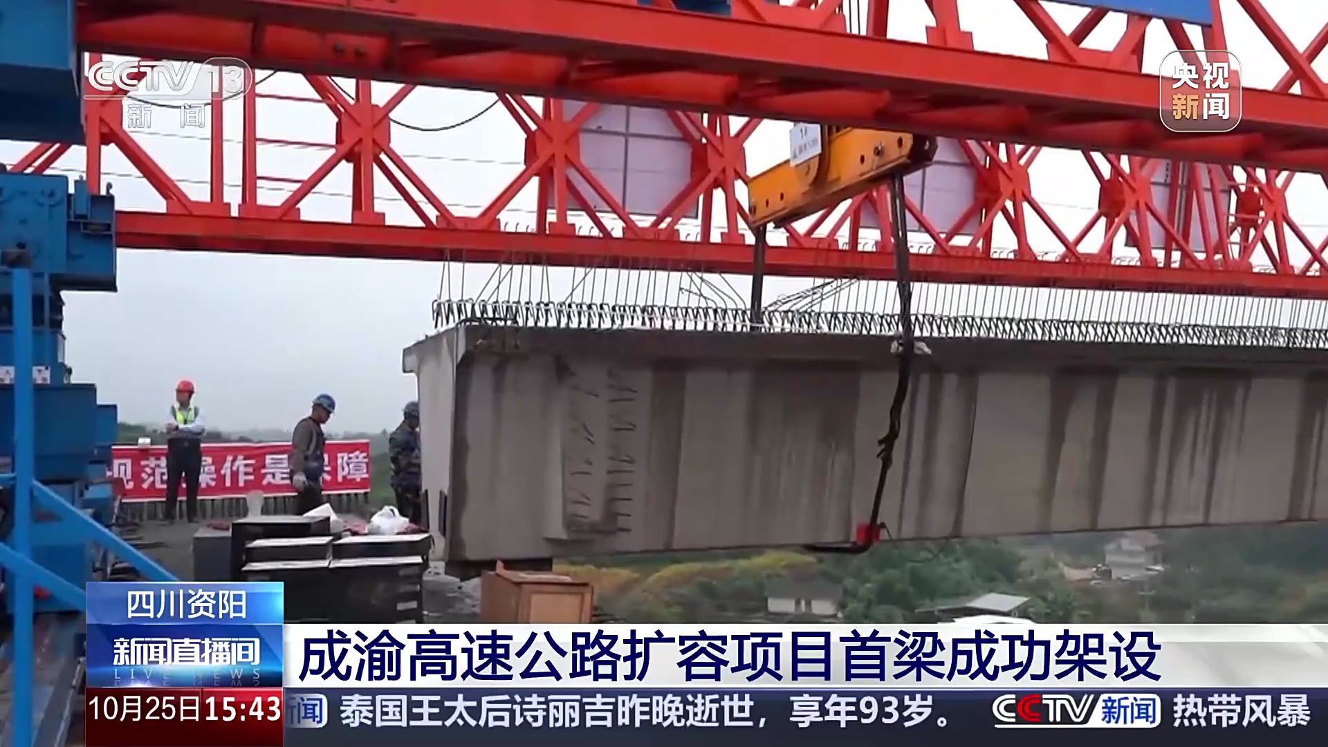 - 2025-10-27 四川资阳 成渝高速公路扩容项目首梁成功架设