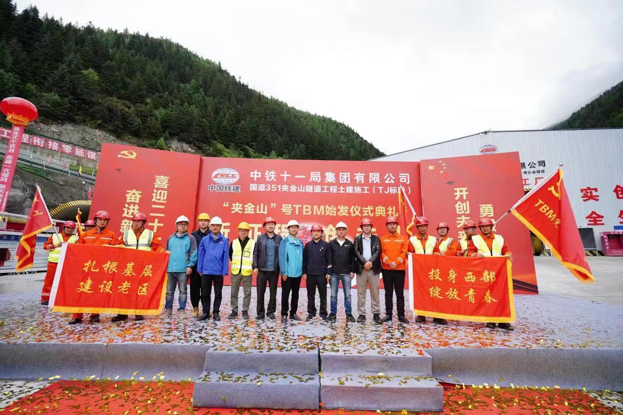 6月26日,国道351夹金山隧道项目TBM(全断面隧道掘进机)设备正式始发,开始进行小金端平导洞掘进。其中,TBM施工为国内普通国省干线公路首次使用。