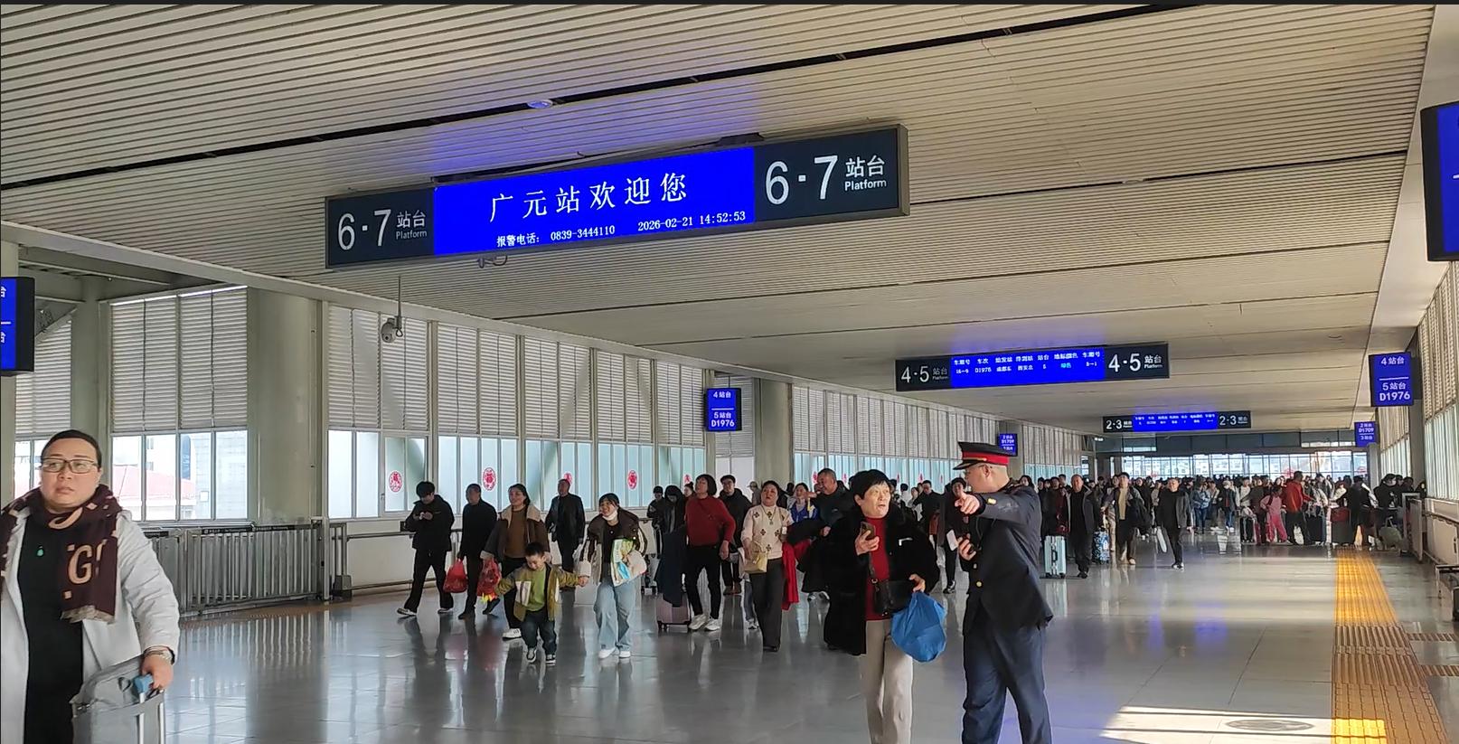 三是升级便民服务,擦亮温馨出行底色。持续优化交通服务品质,全方位提升旅客出行体验。市域内各火车站增设免费充电设备、184个站台座椅,组建青年突击队、党员先锋队,客流高峰期及时增开服务窗口、强化客流疏导。公路客运站全面优化候车环境,开设专属便民服务窗口,提供行李搬运、咨询引导、应急帮扶等暖心服务。交通运输综合行政执法人员、一线服务人员坚守岗位,在高速公路出入口、客运站场、重点景区周边等区域维护交通秩序,提供线路指引、热水供应等贴心服务。2月23日(正月初七)全市迎来春节假期返程高峰,当日发送旅客35.97万人次,全市交通运输系统快速响应、高效处置,动态调整运力投放,强化站场客流疏导,确保返程旅客安全、有序、顺畅集散,为2026年春节假期交通运输保障工作画上圆满句号。(广元市交通运输局)