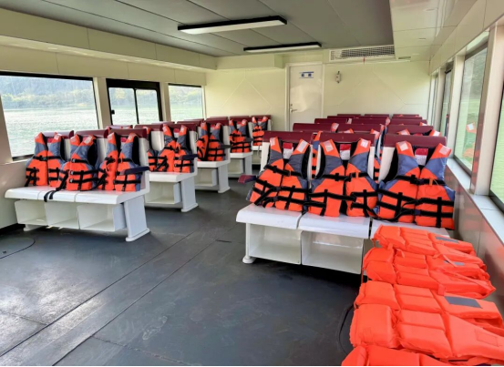走进易坝村渡口,一艘通体洁白的新船静静泊在岸边,外观简约大气。登船望去,舱内地面干净整洁,座椅排列整齐,每个座位旁都贴心配备了救生衣,安全与舒适兼备。渡口岸边,闻讯而来的村民们正有序排队等候登船,脸上满是对“老渡口”的“新期待”。