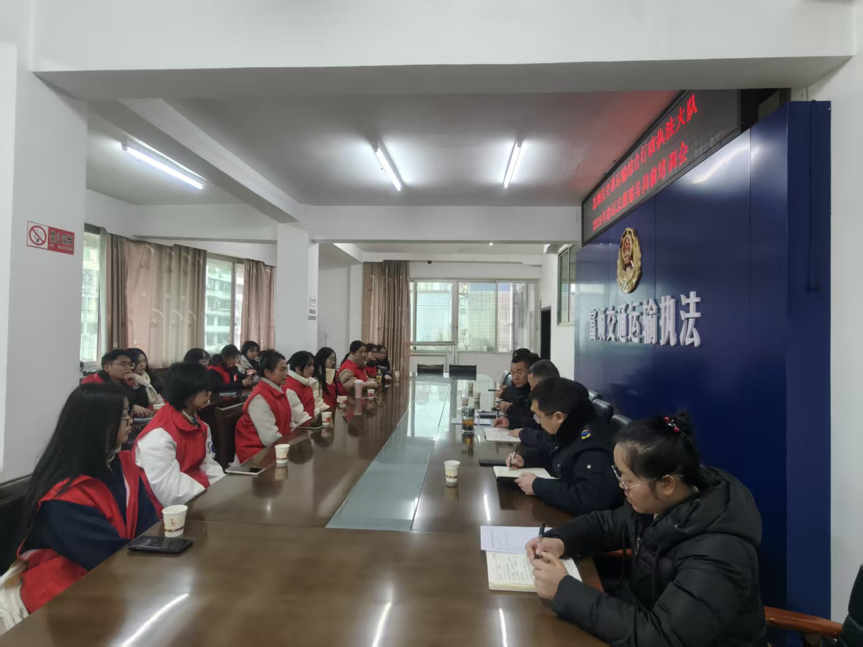 为切实做好2026年春运服务保障工作,提升旅客出行体验,近日,富顺县交通运输综合行政执法大队组织召开“青春志愿·爱在旅途”春运护航志愿服务岗前培训会。会议围绕志愿服务岗位职责、服务内容和安全规范进行详细讲解和部署。