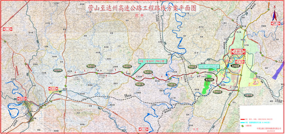 营山至达州高速公路位于川东北经济区核心——达州市与南充市境内,是全省高速公路网布局规划中重要的东西联络线和相邻市州连接的重要通道。项目线路起于南充市营山县的巴中经广安至重庆高速公路新店枢纽互通,途径营山县涌泉镇、老林镇、渠县涌兴镇、达县管村镇、金垭镇,止于达州市通川区石板镇,与达渝高速公路相接。