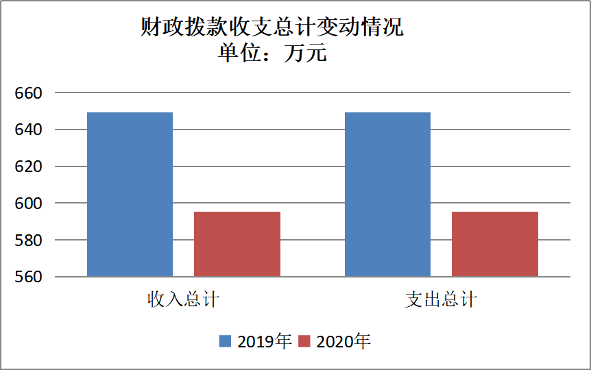 2020年财政拨款收、支总计595.14万元。与2019年相比,财政拨款收、支总计各减少54.03万元,下降8.32%。主要变动原因是:按照厉行节约的要求,一是2020年较2019年,减少了基本工资和绩效工资;二是我院2020年“过紧日子”原则,进一步厉行节约,压减了公用经费支出。