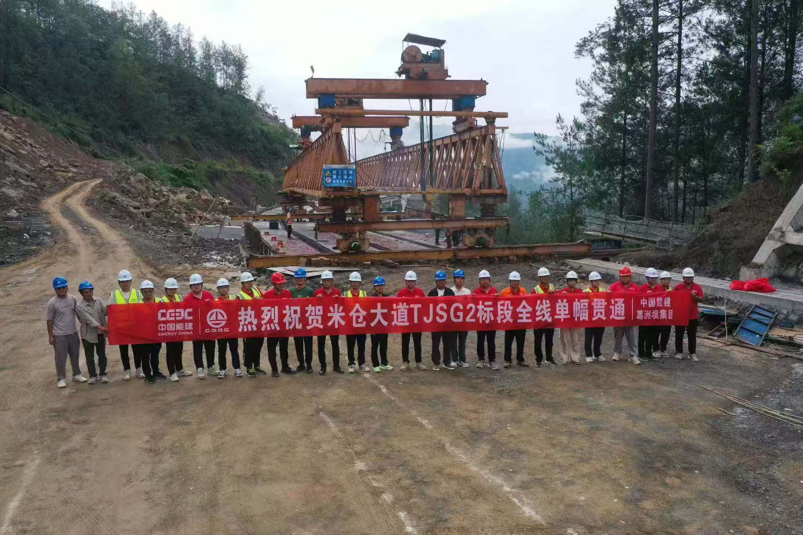 米仓大道TJSG2标起于通江县诺水河镇聂家坝村,止于窑坡里村,全长16.5公里,设桥梁8868米/28座,隧道工程4002米/3座,路基工程3650米,桥隧比77.9%。自开工以来,参建单位克服地质条件复杂、生态环境敏感、施工条件恶劣等困难,奋战1800个日夜,全力以赴打通这条“交旅”环线。目前,TJSG2标全线隧道全部贯通,桥梁下部构造全部完成,正在加快桥梁梁片预制,预计年底双幅贯通并基本实现通车能力。