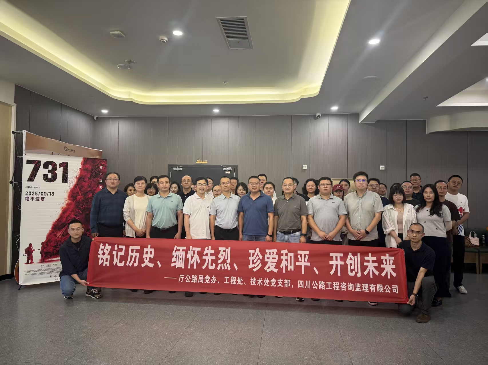 为纪念抗日战争暨世界反法西斯战争胜利80周年,9月19日,厅公路局党委办公室、工程处、技术处党支部与四川公路工程咨询监理有限公司联合开展主题党日活动,组织观看爱国主义教育电影《731》。