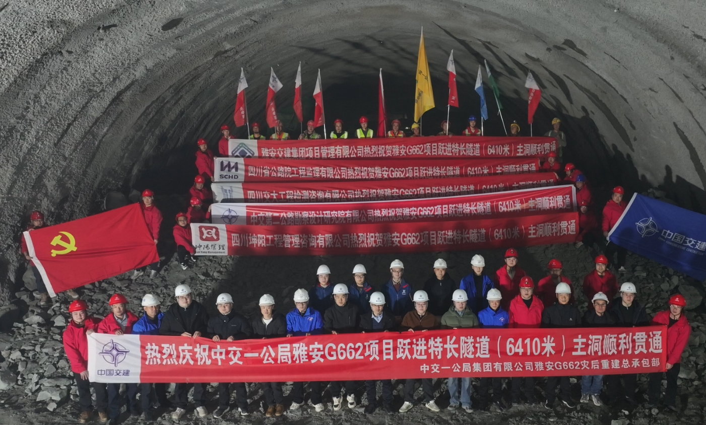 项目路线全长50.4公里,其中,跃进隧道全长6410米,是全线唯一的特长隧道和施工难度最大的关键工程。隧道地处川西强震活动断裂带,穿越三处富水断层破碎带,沿线存在多处高风险滑坡体,极不稳定围岩占比高达89%,且受漫长雨季和频发地质灾害影响,施工安全风险极高、技术难度极大。面对复杂地质和恶劣环境,参建单位始终坚持“安全第一、质量为本、科学统筹、攻坚克难”,通过增设横洞实现“长隧短打”,开设7个作业面同步推进;严格执行“先探后挖”,综合运用TSP、地质雷达等先进技术开展超前地质预报;贯彻“管超前、严注浆、短开挖、强支护、快封闭、勤量测”方针,全过程精细化管理与技术攻坚,确保了隧道安全顺利贯通。