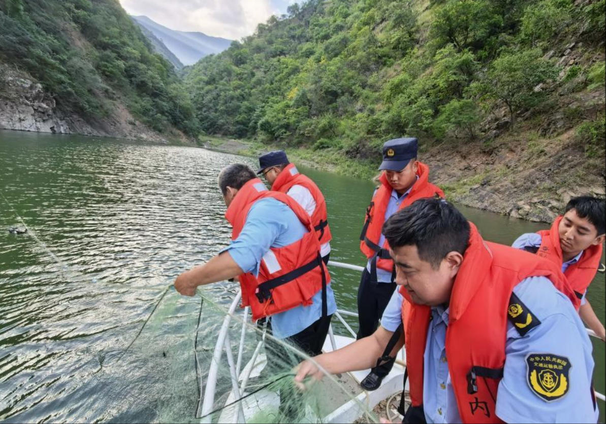 检查坚持问题导向,发现一起在航道内非法设置捕鱼网具、严重影响通航安全的隐患,并查获一艘“三无”船舶。针对上述问题,检查组现场采取措施:对非法网具予以切割、拆除,恢复航道正常通航;对“三无”船舶依法强制拖离,彻底消除安全隐患。