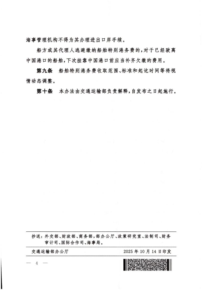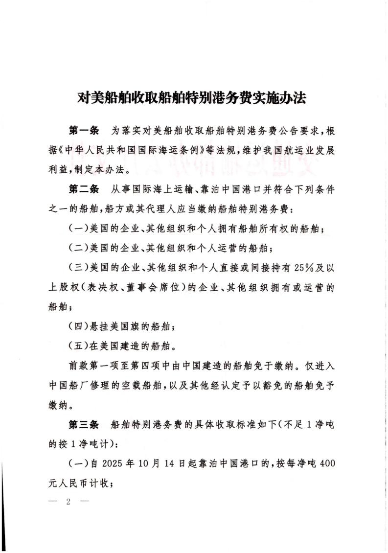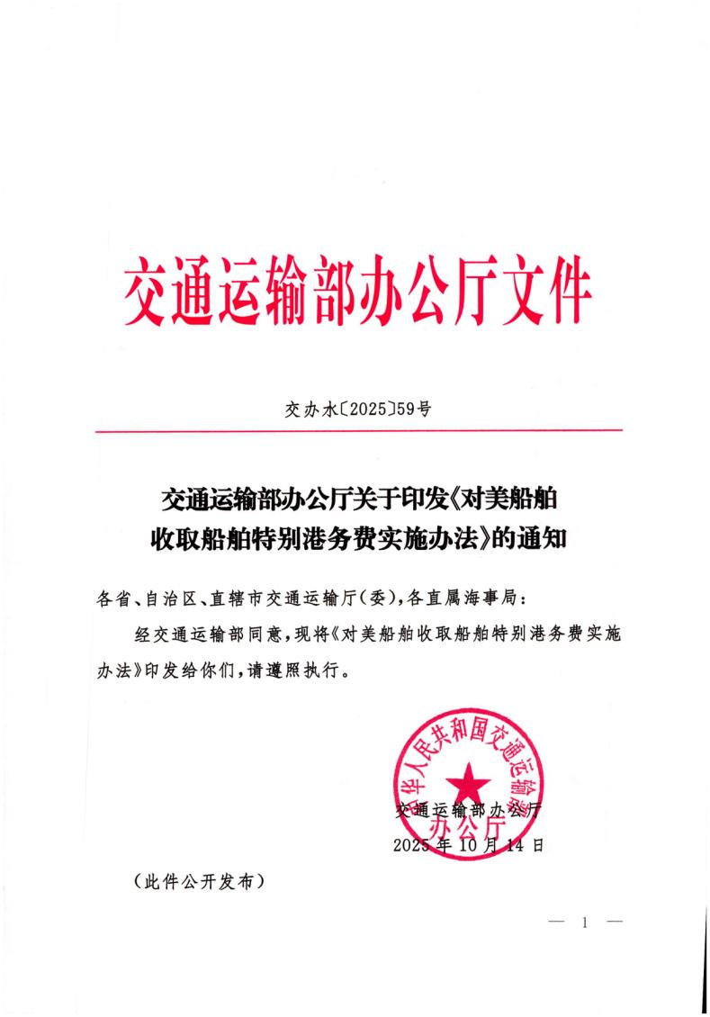 关于印发《对美船舶收取船舶特别港务费实施办法》的通知