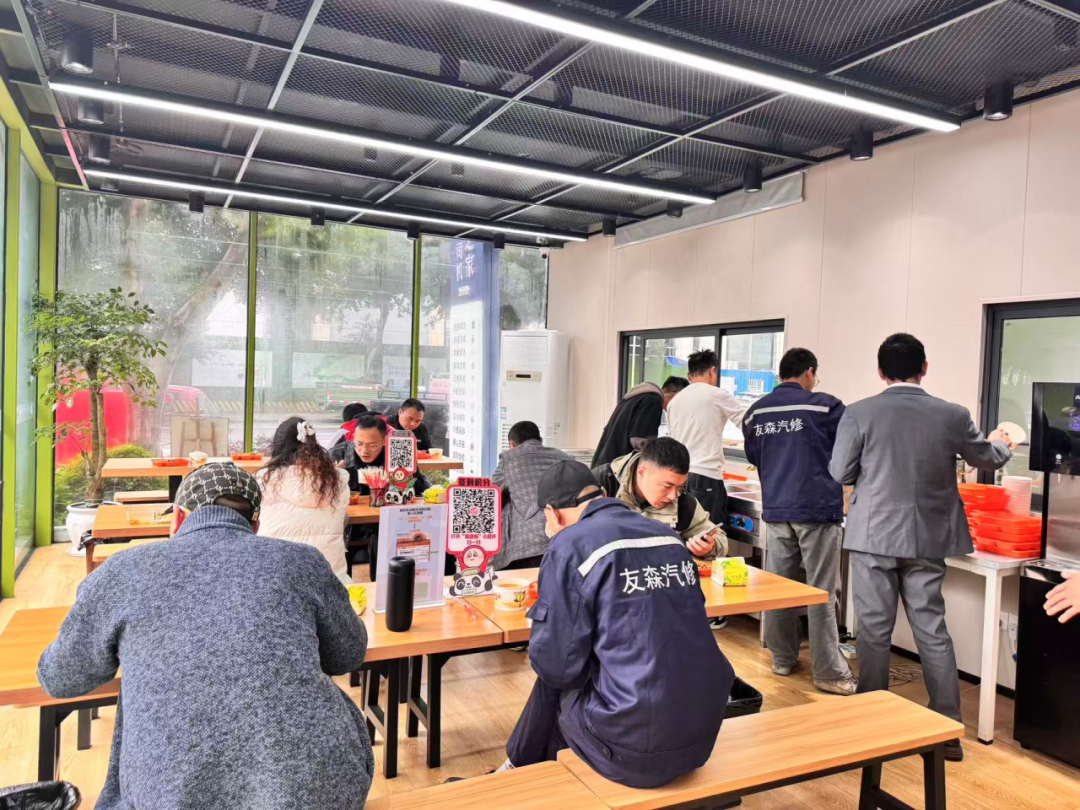 春运期间,这里持续开放17项基础服务:停车充电、平价餐饮、暖心热饮、特惠维修、公益按摩椅、24小时热水淋浴……从早到晚,灯一直亮着。