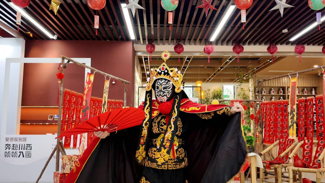 驱车驶入成灌高速安德服务区,年味十足。今年春运,安德服务区不想只做“中途加油站”。“川西风光主题摄影展”300余幅作品异彩纷呈,“年货大集”上郫县豆瓣、现炒瓜子、非遗糖画、糖油果子琳琅满目,川剧变脸、写春联、送福字等一系列活动让赶路的人们提前尝到了“年”的味道。“原本只想歇个脚,结果拍了半小时照片,还买了年货寄回家。”一位前往四姑娘山的广州游客说道。