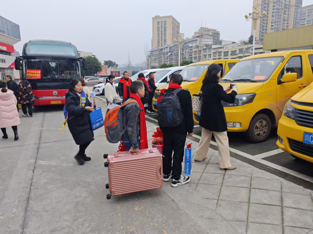2月10日上午,富顺县客运中心,一辆从广东中山发出的“春风行动”专巴缓缓停靠。34名富顺籍务工人员拎着大包小包下车。他们没有拖着行李四处找车,而是径直走向站内专属接驳区——那里,数辆“金通工程”小黄车已发动引擎,按镇村路线分列候客。