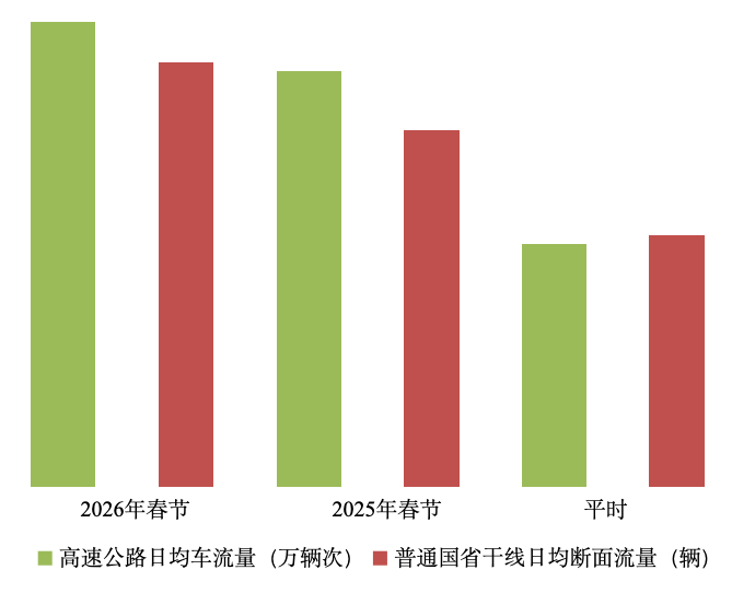 2026年春节超长9天假期叠加天气晴好,适宜出行,探亲访友、周边游与中长线出游持续火热,公众出行活力强劲。高速公路车流量连续5日突破500万辆次;普通国省干线断面流量连续5日超10000辆;“空铁公水”各类客运量全面增长。