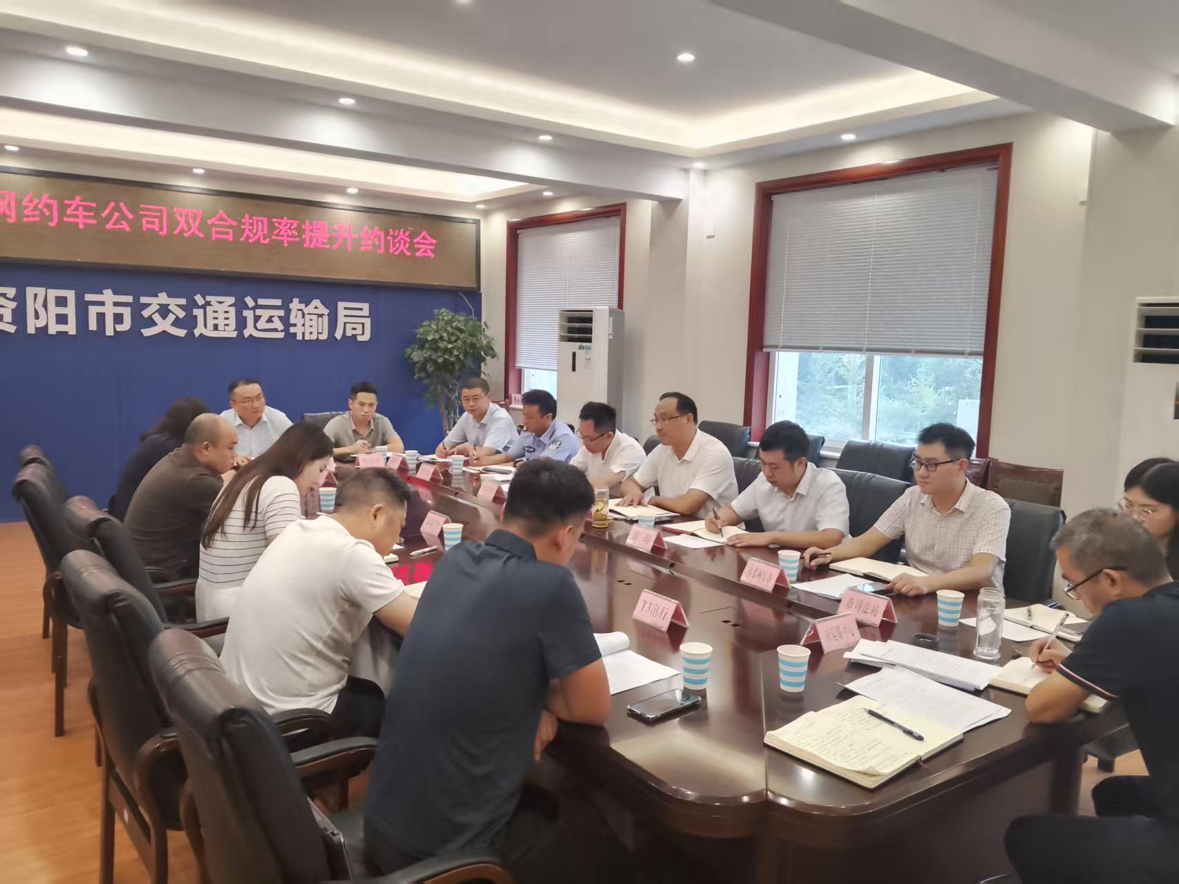 9月16日,资阳市交通运输局分管领导组织召开网约车公司双合规率提升约谈会。市委政法委、市委网信办、市公安局、市司法局、市市场监管局、雁江区交通运输局等相关部门负责同志参加会议,滴滴平台、T3出行等5家网约车公司负责同志接受约谈。