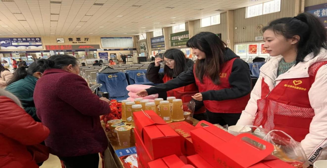 锦江区积极开展春运暖冬志愿服务行动,在辖区交通枢纽重点点位设立志愿服务站,组建专属青年志愿服务队,开展全方位、精细化志愿服务。志愿者们在进出站口、候车大厅、自助售票区等关键点位,为返乡旅客提供咨询引导、票务协助、行李搬运等便民服务,重点帮扶老幼病残孕等特殊群体。现场还准备了马年吉祥物、对联、窗花、U型枕、手套等年俗与实用礼物,让春运归途暖意融融。