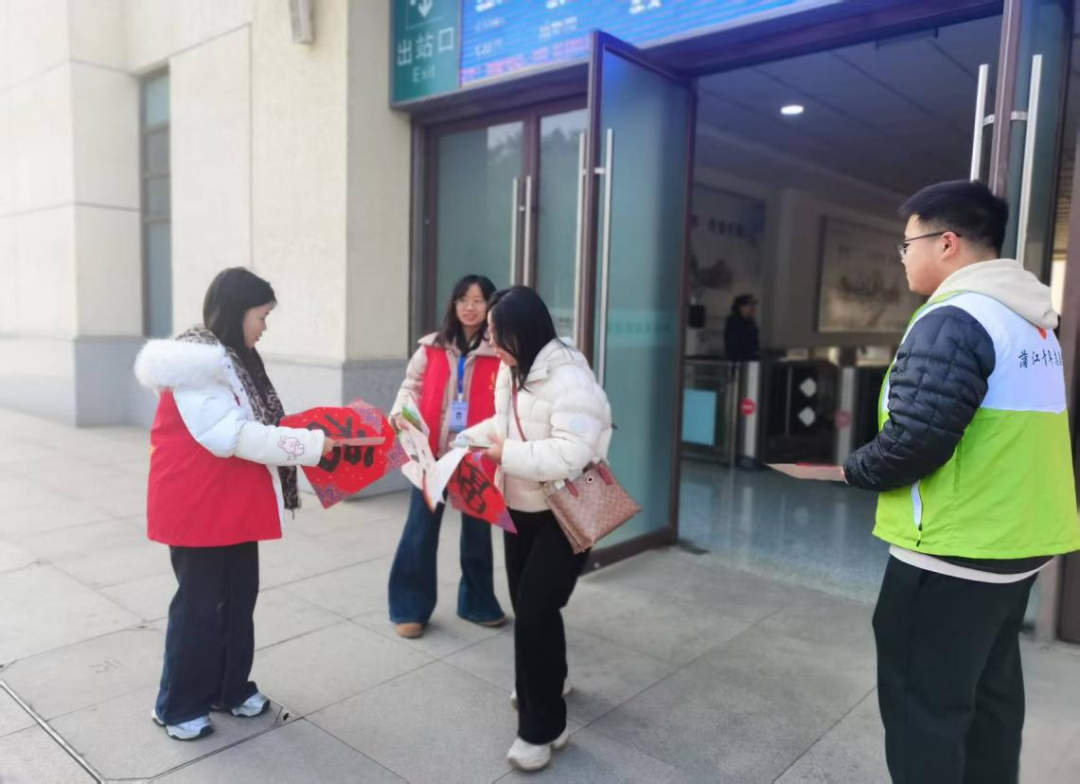 新春临近,年味渐浓。2月10日正值北方小年,成都市交通运输局机关党员志愿服务队在成都东站东广场开展“喜迎新春 情满旅途”志愿服务活动,为南来北往的旅客贴心服务,写春联、送祝福,让交通人的浓浓心意温暖回家路。