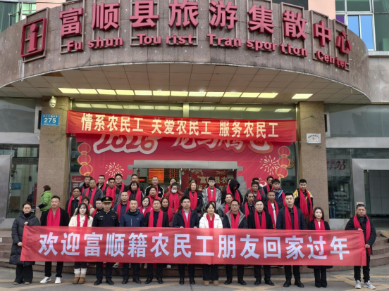 为深入推进“春风行动+金通工程”融合落地,扎实做好农民工返乡返岗运输服务保障工作,切实实现“厂门口到家门口”的便捷出行目标。2026年2月10日上午,富顺县客运中心站前广场隆重开展“情系农民工、关爱农民工、服务农民工”春风行动首班返乡专车接站活动。县交通运输局、县农民工服务中心携手省汽运自贡集团旗下富顺吉祥公司联合发力,以金通工程优质服务体系为支撑,用暖心举措迎接富顺籍务工老乡平安返乡。