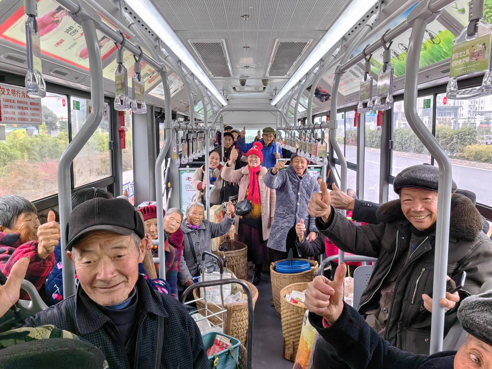 “老人家,筐子放稳当,坐好哈!”面对这些特殊的“通勤族”,T53路的驾驶员们早已练就了一套贴心服务流程。他们熟练地帮老人们把沉甸甸的菜篮、鸡蛋筐搬上搬下,在车内安排出置物空间,一路平稳驾驶,守护着老人们的安全。