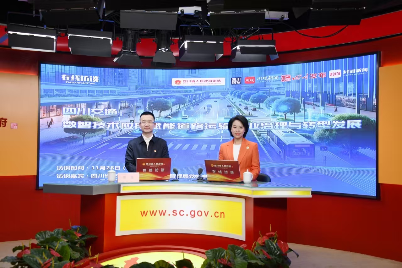 11月28日,四川省交通运输厅道路运输管理局党委书记、局长彭涛做客四川省人民政府网站在线访谈栏目,就“数智技术应用赋能道路运输行业治理与转型发展”主题与广大网友进行交流,针对网友关心的问题进行了回答。