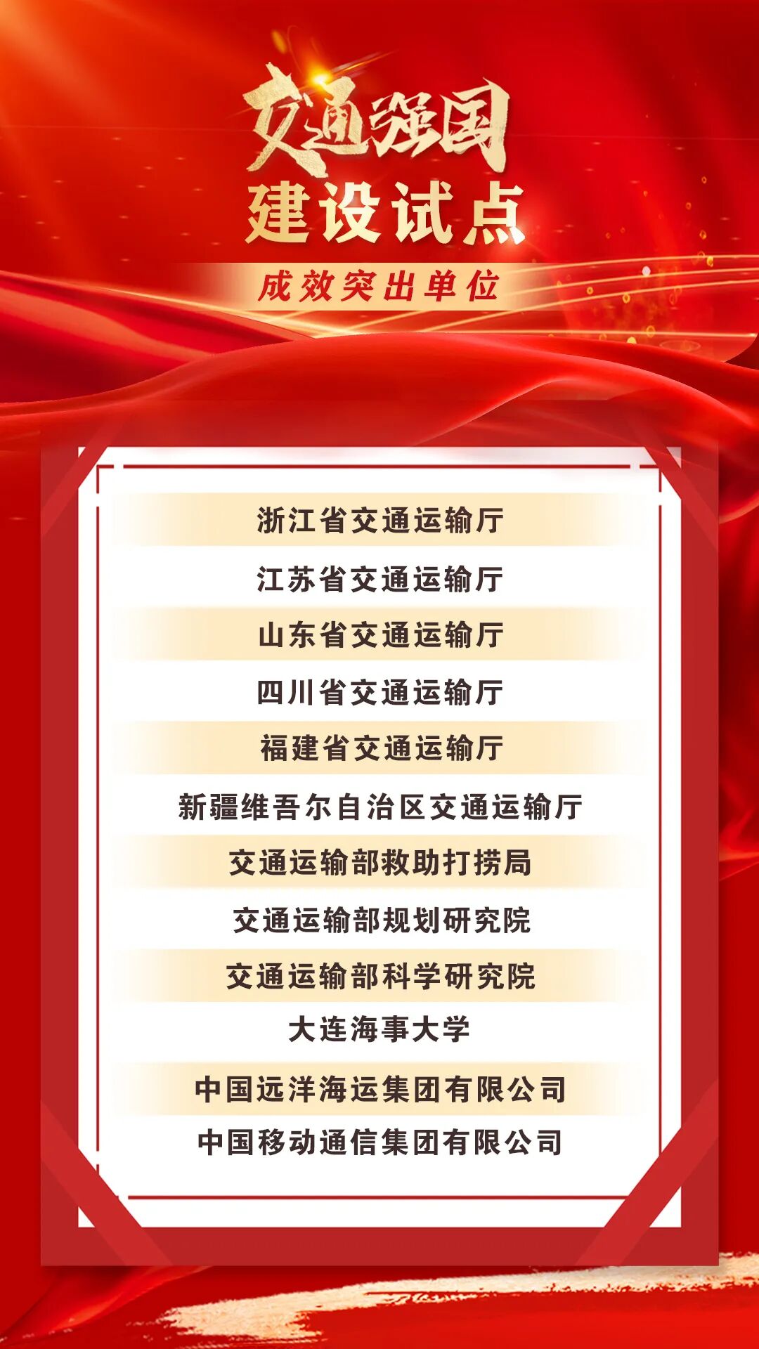 通报表扬!交通强国建设试点成效突出单位和成效突出任务名单发布
