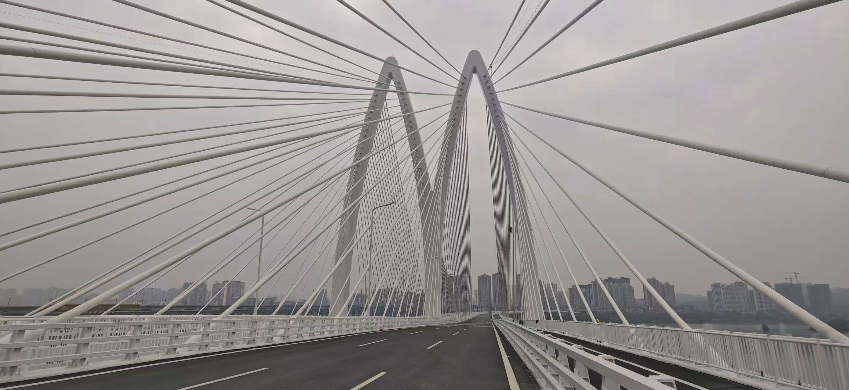 遂宁涪江六桥是全国首座复杂曲线荷花瓣形钢混组合索塔斜拉桥,设计既有结构技术创新,又有重在写意、务求写实的艺术境界。大桥也是遂宁首座双塔五跨混凝土梁斜拉桥,主跨338米,总长3.215公里,设计时速60公里,双向六车道,配套非机动车道及人行道。涪江六桥通车后将缓解通德大桥、通善大桥及观音湖隧道的过江压力,促进区域协调发展。