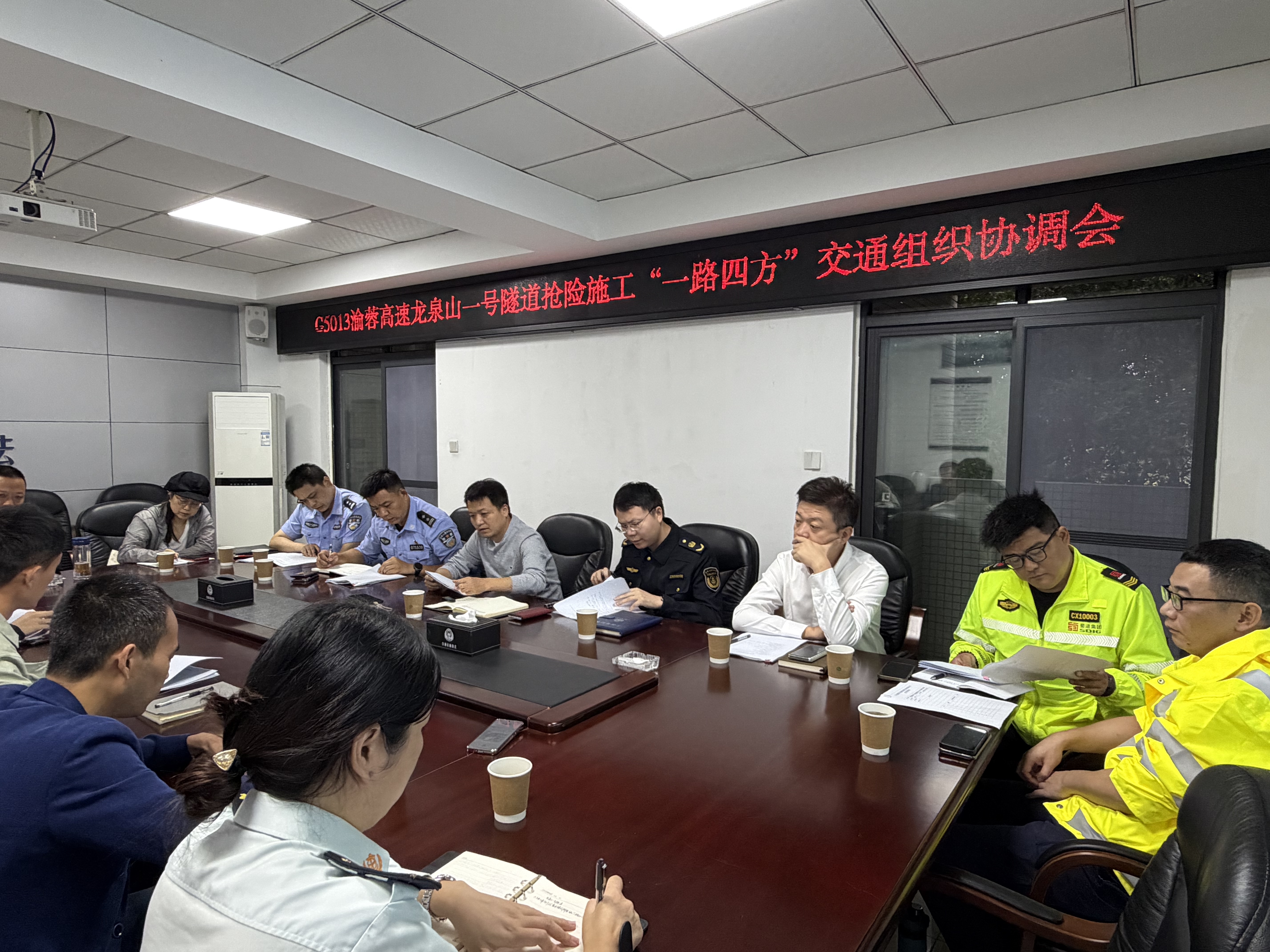 10月11日,省交通执法总队第一支队六大队会同高速交警、营运公司及辖区涉路及养护施工单位召开G5013渝蓉高速龙泉山一号隧道抢险施工“一路四方”交通组织协调会。与会各方就涉路施工重点、难点进行了交流探讨,并形成一致意见。强调:要规范填报和发布信息(公告),按要求提前发布施工公告,规范填报施工信息,及时更新施工动态;要加强人员教育培训,提升安全意识,深刻认识在建与在运营高速施工环境的变化,充分发挥安全员、警示人员作用,切实保障施工安全;要严格按照《四川省运营高速公路涉路及养护规范化施工指南(试行)》规范管控,强化统筹,合理规划断道线路,务必做到施工安全、布控规范、责任明晰、信息更新及时,最大程度降低施工对交通的影响,保障司乘人员安全出行。