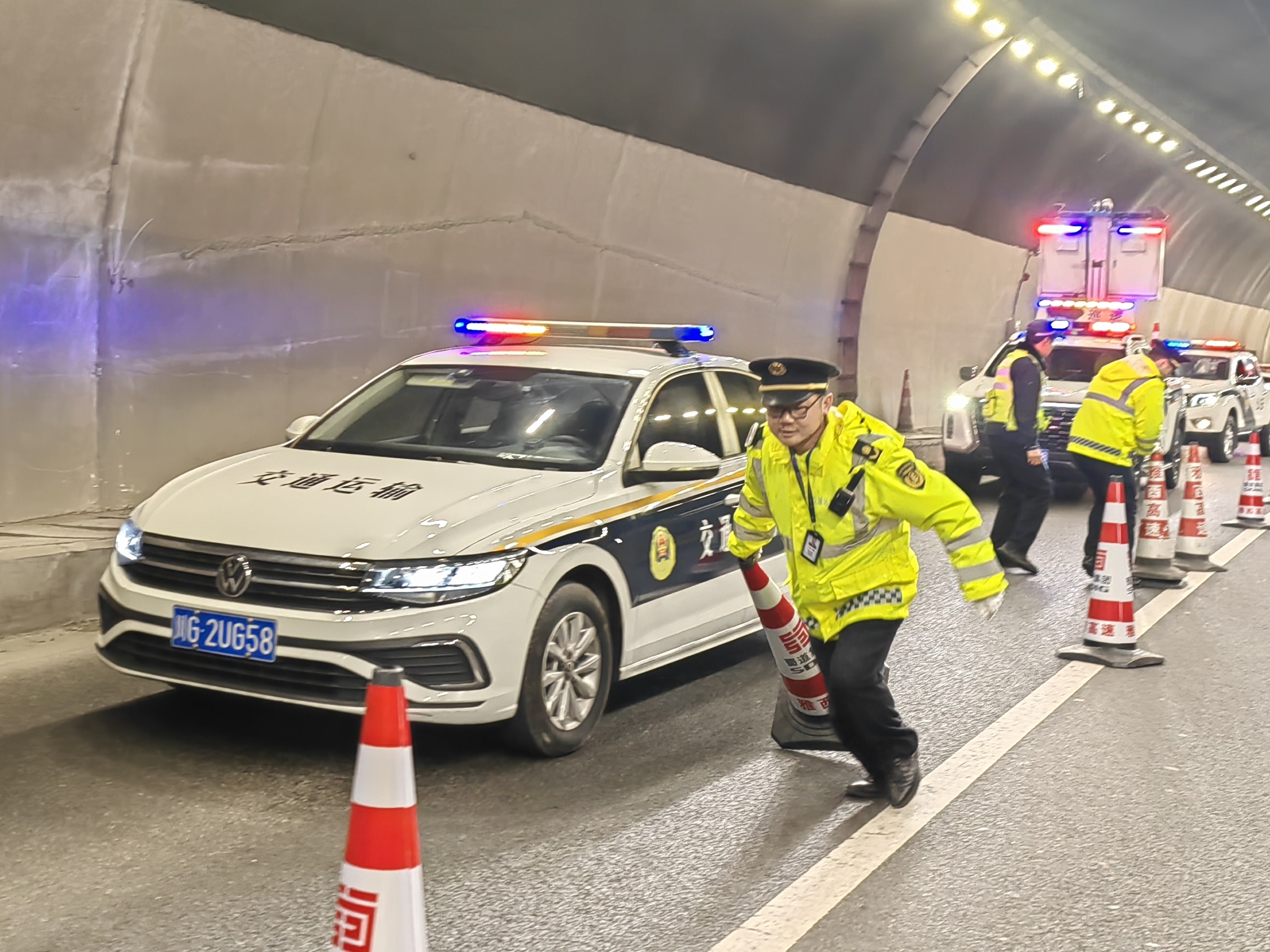 为不断强化“一路四方”突发事件联勤处置水平,1月22日,交通执法五支队五大队联合高速交警、营运公司、属地消防等单位在G5京昆高速公路雅西段汉源隧道开展隧道交通事故及火灾消防应急救援演练。演练模拟处置了特长隧道交通事故造成车辆自燃事件,各联勤单位按照演练方案迅速响应、紧密协作,有序开展了信息报告、交通管制、人员疏散、灭火救援、伤员救治、现场清障、路产勘察、隐患排查等各项工作,有效检验和强化了“一路四方”联勤处置突发事件水平。下一步,“一路四方”将结合实际继续优化细化应急预案、现场处置等工作,切实做好“以演促战”,保障群众出行和高速公路安全。