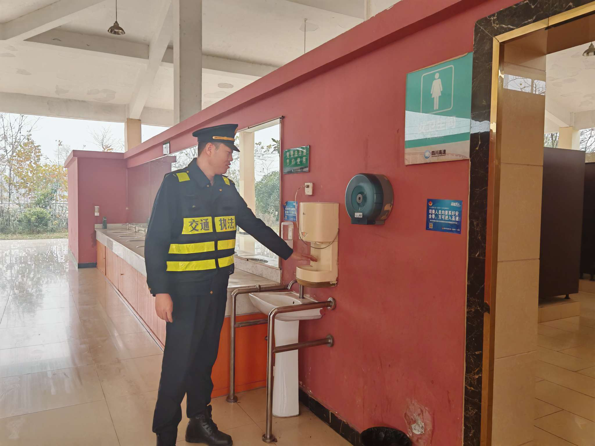 1月11日,交通执法五支队十一大队深入SA2成都第二绕城高速西段花源服务区开展服务保障监管工作,重点检查服务区环境卫生、设施设备运行及工作人员在岗情况等,指出存在的问题及不足,强调:一是要加强服务区夜间卫生保洁工作力度,保持环境干净整洁,为广大出行群众提供温馨舒适的休息环境;二是要做好充电桩日常巡检维护工作,确保充电设施正常运行;三是要配齐配强安保力量,加密夜间巡查频次,坚决保障出行群众生命财产安全,营造安全、温馨、舒适的休息环境。