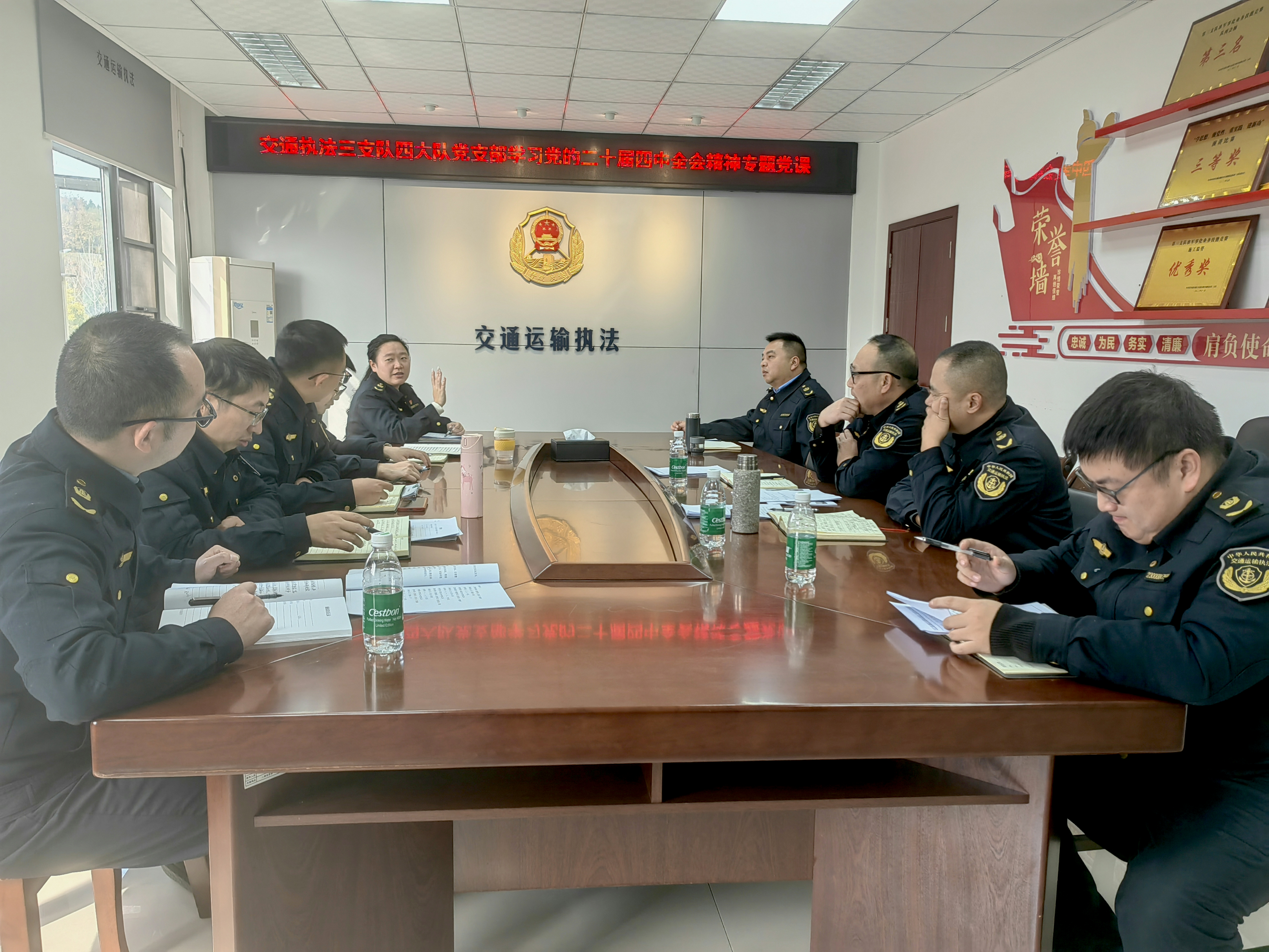 为推动党的二十届四中全会精神在交通一线落地生根,引导党员干部深刻把握“十五五”时期发展蓝图,12月16日,交通执法三支队四大队党支部组织全体党员干部开展学习贯彻党的二十届四中全会精神专题党课。党课介绍了党的二十届四中全会的基本情况、召开背景以及重大意义,重点解读了全会的核心要点,提出了贯彻落实全会精神的具体举措。强调:要筑牢思想根基,以全会精神为引领,锚定执法为民初心,将纪律规矩融入执法工作各环节;要锤炼过硬本领,聚焦数智赋能与规范执法,提升复杂场景处置与合规办案能力;要勇担时代使命,主动融入交通治理现代化,严打突出违法行为、督促治理安全隐患,以协同共治守护群众出行平安。
