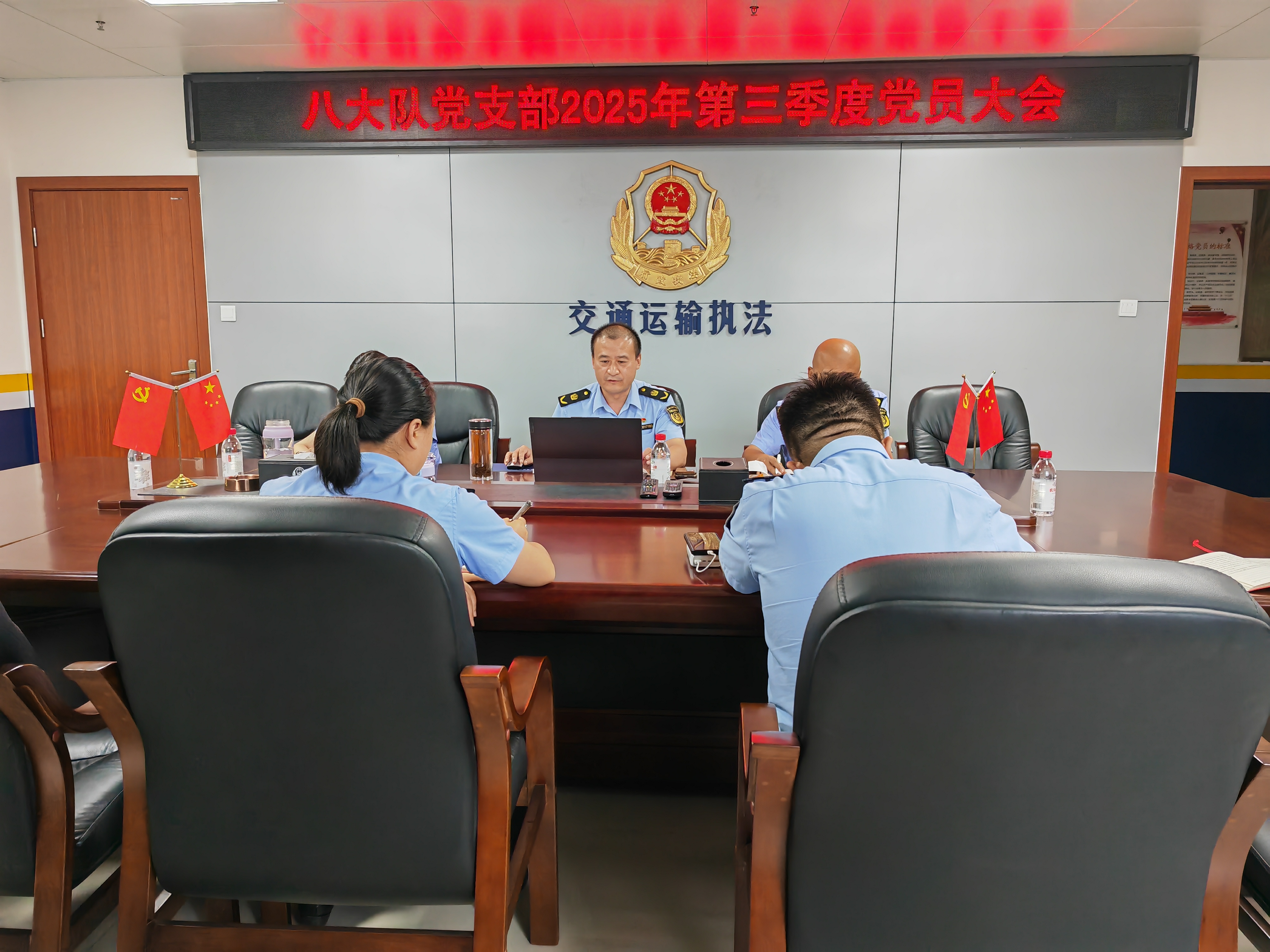 9月26日,省交通执法总队第一支队八大队组织召开党员大会,深入学习贯彻习近平生态文明思想。会议以“高质量党建引领高水平生态环境保护”为主题,通过学原文、读原著、悟原理,深刻体悟习近平生态文明思想的深刻意蕴,全体党员围绕会议主题、结合职能职责深入开展交流讨论,并就理解贯彻落实“两山”理念充分发表个人意见。会议强调:要在深学细悟中提高政治站位,扛起生态环境保护政治责任;要树牢生态文明理念,注重党建要求、行业要求、生态要求同步谋划、同步部署、同步实施,保障党建活动有效开展,提升跨部门合作和群众参与度,丰富党建活动内涵,提高党建活动质量;要坚持人民至上,以基层高质量党建引领高水平行业生态环境保护,注重融入日常、抓在经常,拓展工作载体,优化工作机制,推动行业质量与生态环境保护融合发展。