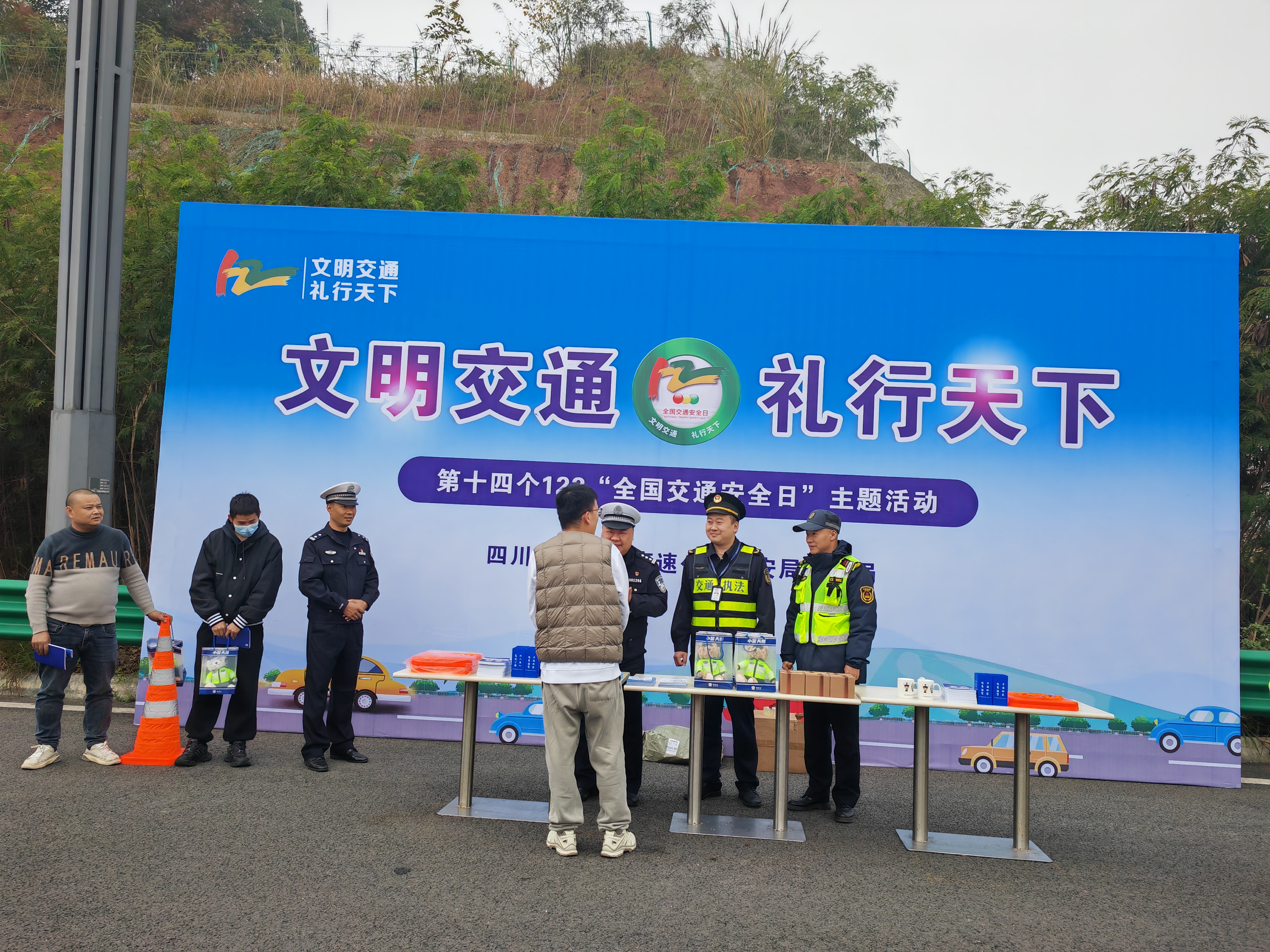 12月2日,交通执法一支队二大队联合高速交警、营运公司在S3成资渝高速公路资潼资阳临空西收费站外开展“全国交通安全日”主题宣传活动。“一路三方”紧密围绕“文明交通 礼行天下”主题,现场通过交通安全知识有奖问答、交通法规面对面宣讲、发放宣传资料等多种形式,倡议:牢记文明之“诺”、践行文明之“礼”,共赴文明之“约”,做一个守法明理、出行有“礼”的交通参与者,进一步引导广大司乘人员树立交通安全意识,营造人人明礼守法、崇礼向上的社会氛围和安全、和谐、顺畅的道路交通环境。