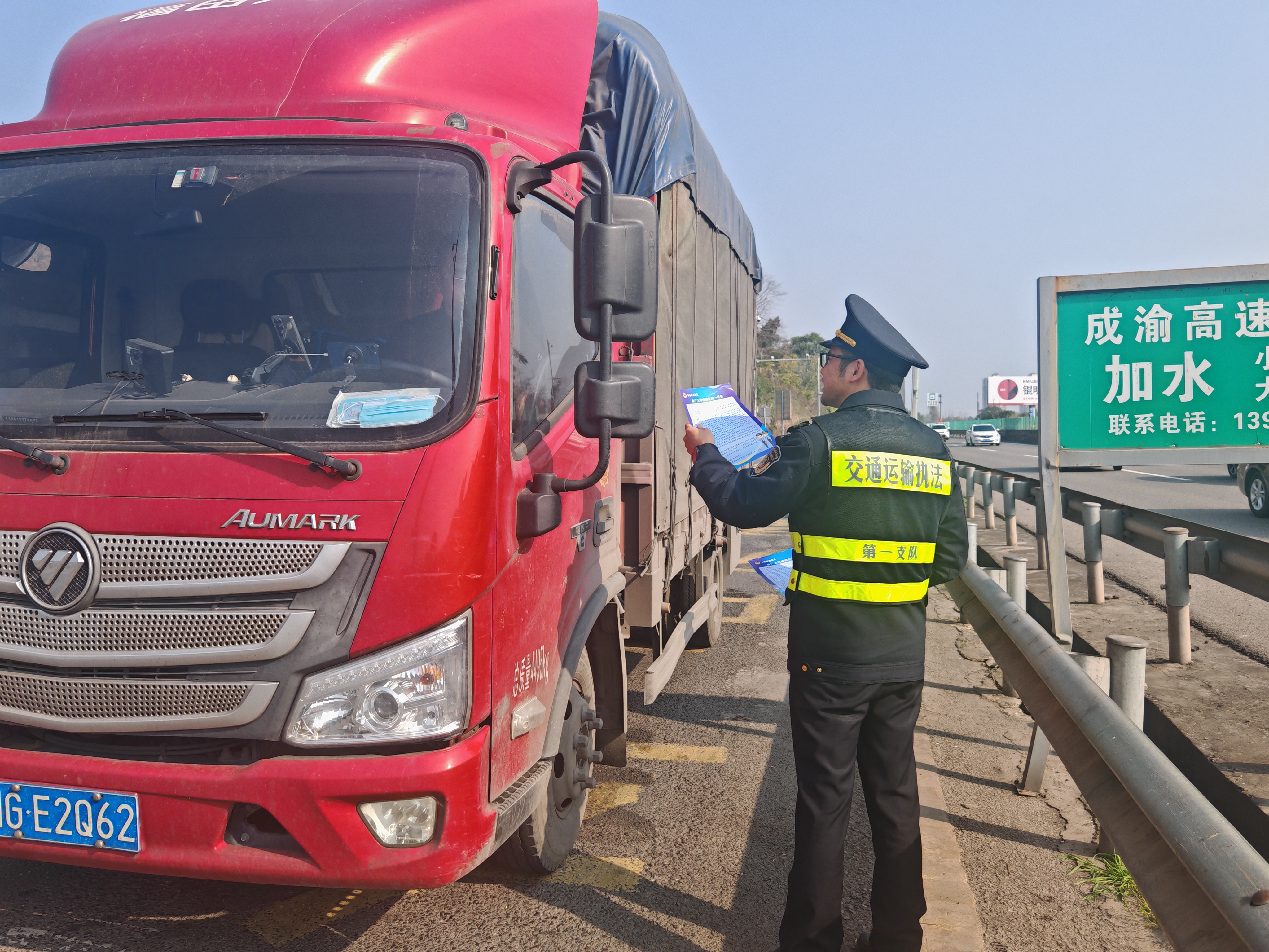 为切实做好2026年春运道路交通安全保障工作,2月19日,交通执法一支队三大队深入G76厦蓉高速公路成都段服务区开展“平安春运”主题宣传活动。执法人员在服务区设置宣传咨询台,通过悬挂横幅、发放宣传资料、面对面讲解等形式,向过往司乘宣传春运安全出行知识,重点讲解疲劳驾驶、超员超载、占用应急车道等违法行为的危害,提醒驾驶员全程系好安全带、杜绝酒后驾车,普及恶劣天气行车技巧与事故应急处置方法。执法人员还主动为司乘提供路况咨询、热水供应等便民服务,将安全宣传与暖心服务相结合,积极营造文明出行、平安返乡的浓厚氛围,为辖区春运道路安全畅通奠定坚实基础。