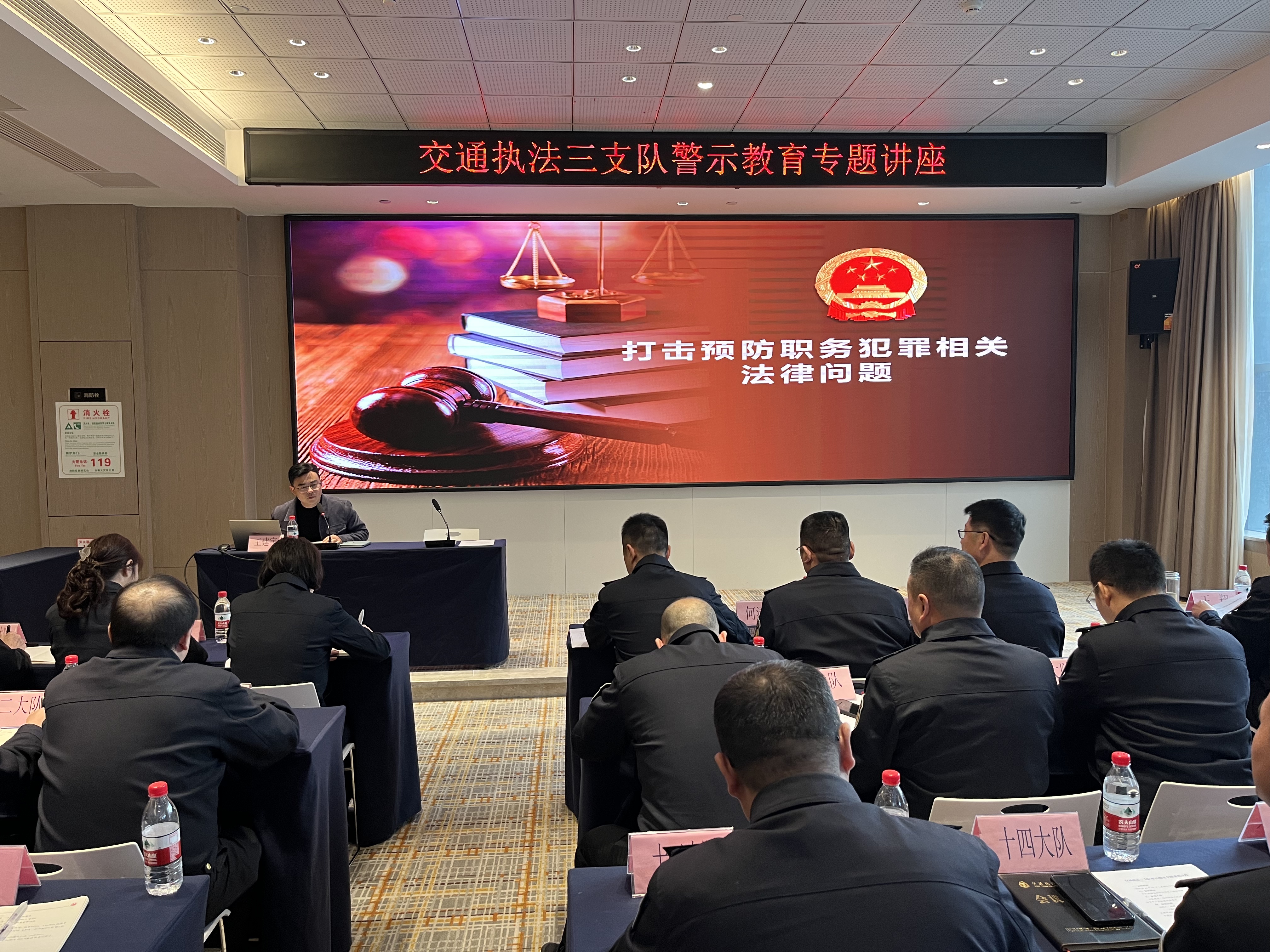 为深化支队“以案促改”专项工作,推动党员干部进一步明晰职务行为“红线”与“底线”,筑牢廉洁履职思想防线,近日,交通执法三支队组织召开了以“知敬畏、存戒惧、守底线”为主题的预防职务犯罪警示教育专题讲座。德阳市人民检察院第一检察部主任、四级高级检察官王建宇以“理论授课+案例分析”的方式,围绕职务犯罪概念、常见表现形式及法律后果进行了深入浅出的讲解,专题讲座后,由支队长刘翔宇进行集体廉政谈话。下一步,支队将紧扣巡视整改要求,聚焦执法队伍廉政建设,重点抓好三方面工作:一是压实主体责任与“一岗双责”,规范执法行为,筑牢拒腐防变的思想道德防线;二是健全“嵌入式”数字监督、关键岗位防控等机制,严肃查处违纪违法问题;三是聚焦巡视反馈问题清单,全面开展自查自纠,建立问题台账、责任清单、整改时限“三位一体”推进机制,确保整改任务落地见效、闭环管理。