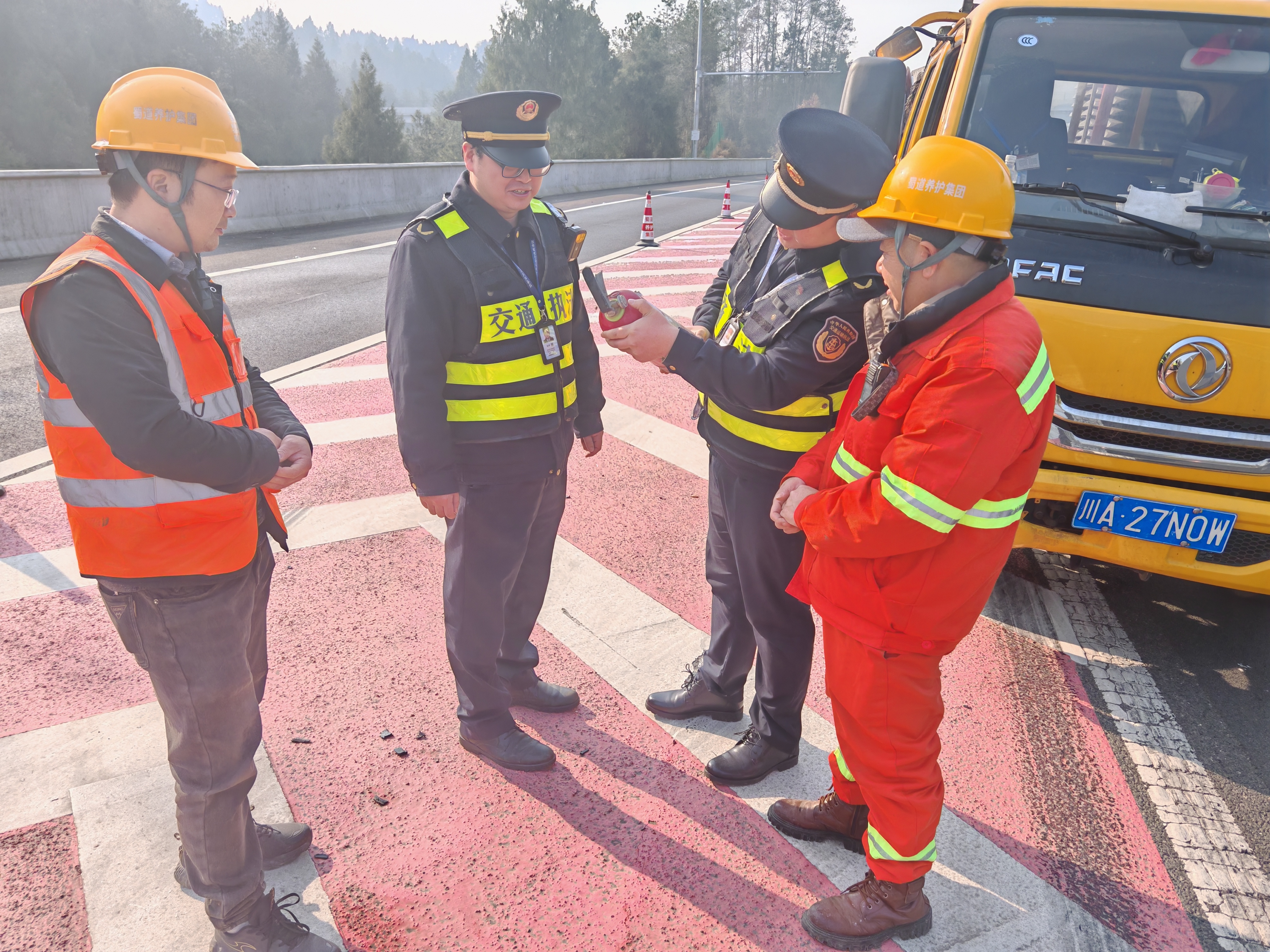 为切实加强冬季高速公路涉路施工安全监管,有效预防和减少道路交通事故,保障辖区高速公路安全畅通,1月13日,交通执法三支队十一大队深入S2成巴高速公路巴南段开展冬季涉路施工专项检查行动,重点检查各施工点位现场安全管理、警示标志标牌摆放、夜间反光标识配备等情况,详细询问施工人员安全培训、应急预案制定及演练等相关事宜,对检查中发现的安全隐患,现场向施工单位下达整改通知书,明确整改时限和要求,确保隐患清零。同时,结合冬季大雾、雨雪、冰冻等恶劣天气多发的特点,要求施工单位:要强化安全责任落实,严格履行安全生产主体责任,健全冬季施工安全管理制度,定期开展施工人员安全警示教育和技能培训,全面提升全员安全防范意识和应急处置能力;要规范现场施工管理,合理调整冬季施工计划,避开恶劣天气时段作业,严格按照规范设置施工区域安全防护设施,及时清理施工废料和路面障碍物,杜绝因施工占道、防护不到位引发交通事故;要完善应急处置预案,针对冬季大雾、雨雪、冰冻天气特点,细化应急预案,备足融雪剂、防滑沙、警示灯等应急物资,加强与交通执法、高速公安、运营公司的联动协作,遇有突发情况第一时间上报并启动应急响应,全力保障道路通行安全。