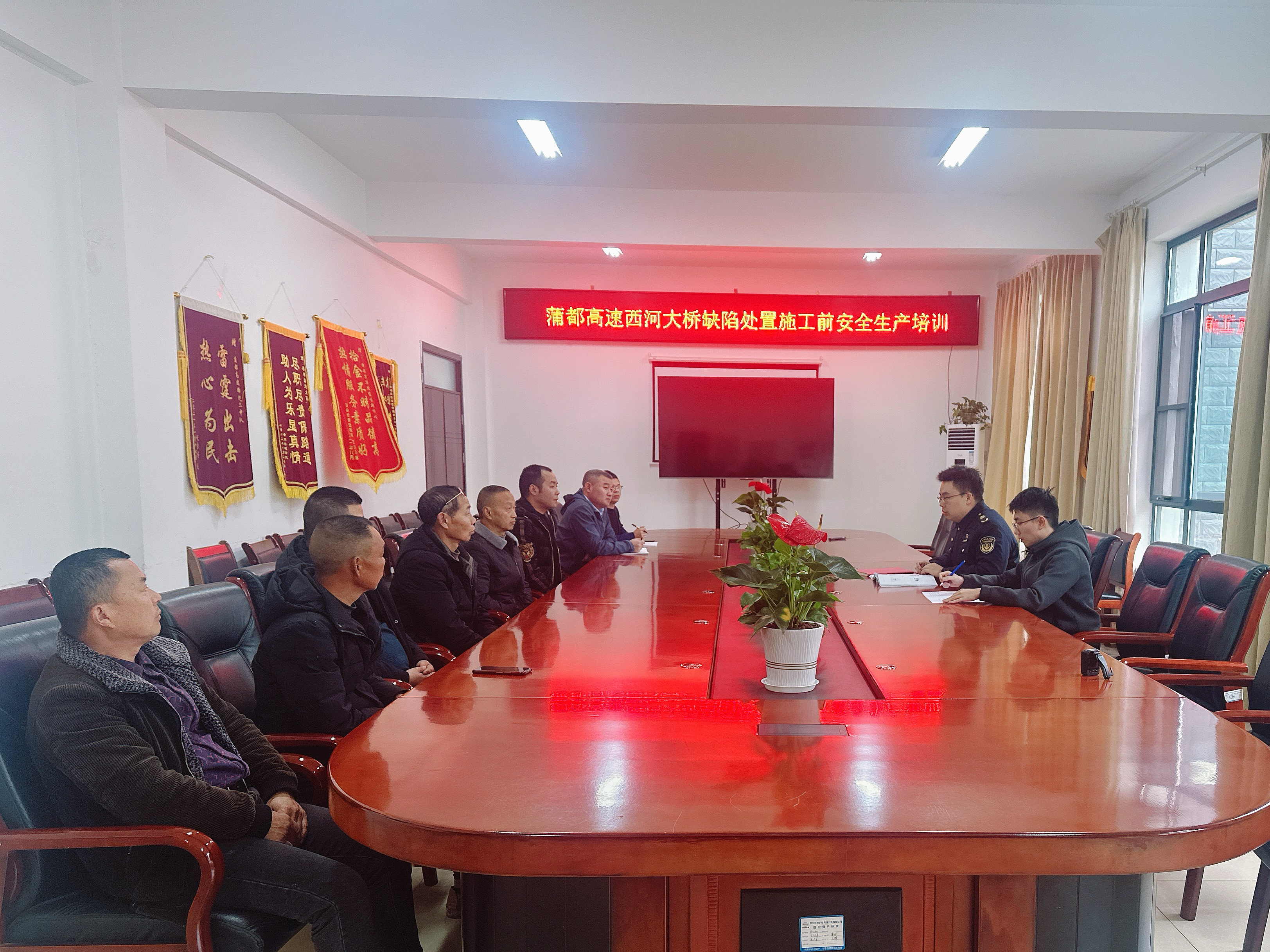 2025年3月18日,省交通执法总队第五支队十四大队联合营运公司、施工单位召开桥梁病害处置施工安全培训会,按照《四川省运营高速公路涉路及养护施工规范化施工指南》要求,重点讲解高速公路养护施工安全管理要求、施工规范化操作流程。强调:一是严格落实企业安全生产主体责任,按照批准的施工方案实施,规范使用高速公路业务管理系统,做好施工作业信息填报工作;二是强化安全教育培训和施工现场管理,提高施工作业人员安全意识,严格按照规范要求开展施工作业;三是加强交安设施维护,重视监督检查,强化问题整改,切实保障道路安全畅通。