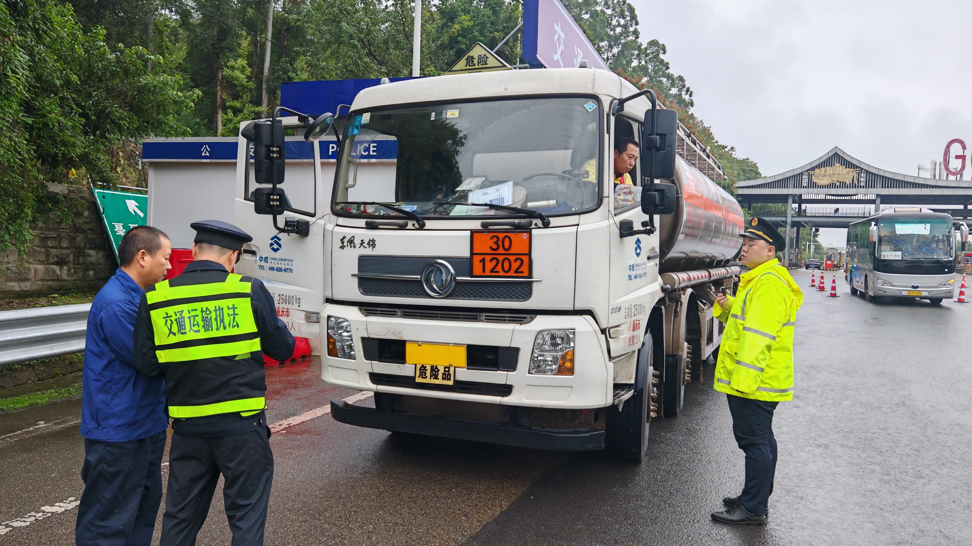 11月7日,交通执法七支队四大队联合重庆市交通运输综合行政执法总队高速公路第一支队三大队,在G65包茂高速渝北收费站开展冬季川渝联合执法检查。重点查处两客一危、非法营运等道路运输违法行为。同时,向司乘人员宣传高速公路法律法规及交通安全知识,引导广大群众树立遵纪守法和安全出行意识,共同维护川渝两地高速公路安全形势持续稳定。