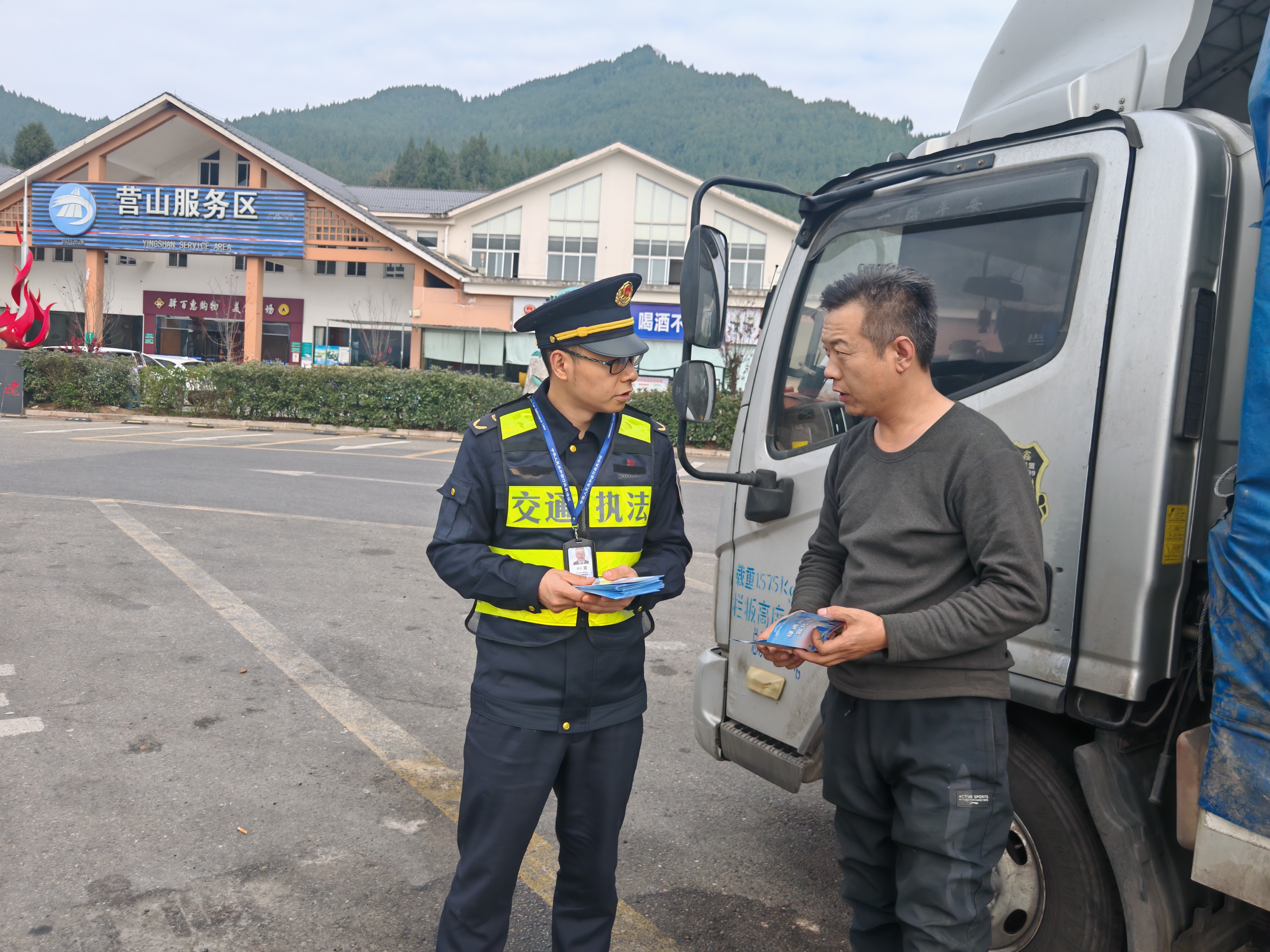 2月4日,交通执法七支队十七大队在G85银昆高速巴南广段重点服务区、收费站开展“绿通”政策宣传活动,通过现场讲解、发放宣传资料等方式,向过往货运驾驶员解读《鲜活农产品品种目录》、绿通装载标准等内容,引导驾驶员合规装载运输,依法享受“绿通”政策优惠,切实维护高速公路通行秩序。