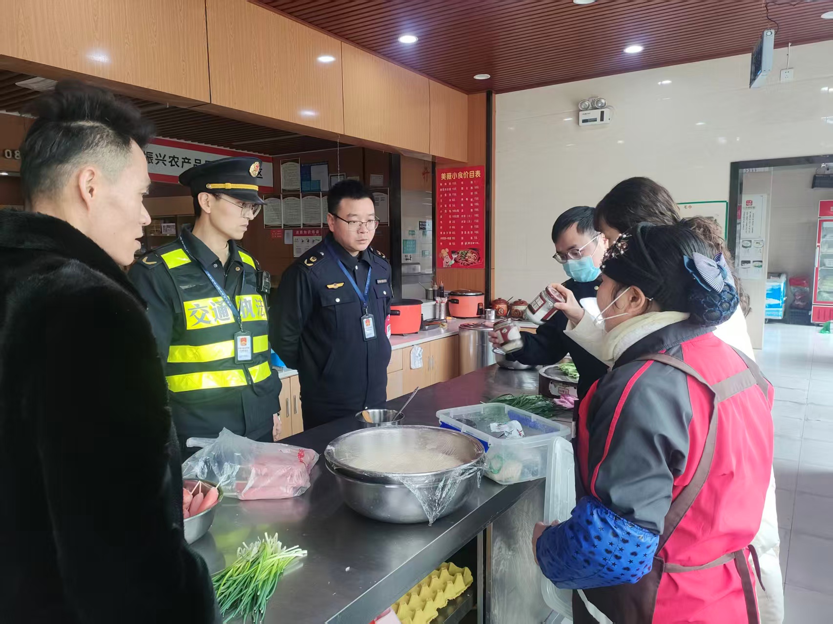 2月4日,交通执法七支队十六大队联合巴中市巴州区市场监督管理局深入G85 银昆高速公路巴南广段曾口服务区开展节前食品卫生安全专项检查。重点检查食品出入库台账、食品保质期、食品加工、餐具清洗消毒及从业人员健康管理等,指出存在的问题和不足,强调:一是要高度重视食品安全管理工作,严禁销售过期、“三无”产品,确保食品卫生安全;二是要严格现场管理,做好人员卫生、食材加工、清洁消毒等,不断提高服务区食品卫生安全管理工作规范化水平;三是要建立健全完善的食品安全管理台账,确保食品来源可溯、去向可查,规范管理记录;四是要加强春运期间物资储备,提升服务管理水平,全力保障出行群众消费需求。