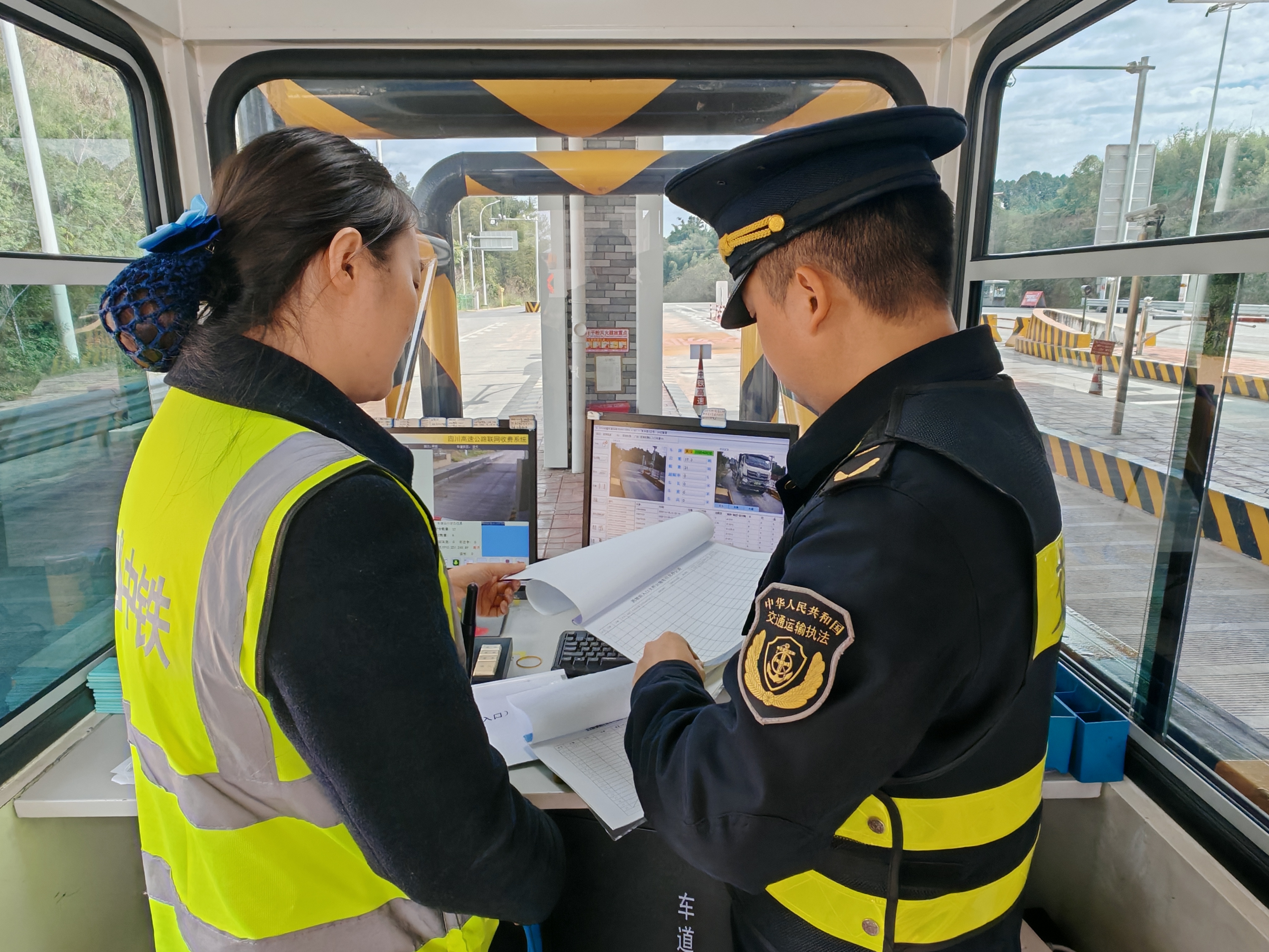 11月26日,交通执法一支队十一大队深入SQ宜宾绕城高速南段沿线收费站开展超限治理监管工作,重点检查收费站计重检测设施设备运行情况以及超限运输车辆通行工作台账等,指出存在的问题并提出意见建议。强调:要严格履行“入口治超”责任,严把高速公路“入口关”,坚决杜绝违法超限运输车辆上路行驶;要做好计重检测设施设备日常维修保养工作,确保称重数据准确有效;要加强政策宣传,引导广大从业人员树立合法运输意识,共同遵守维护高速公路良好秩序。