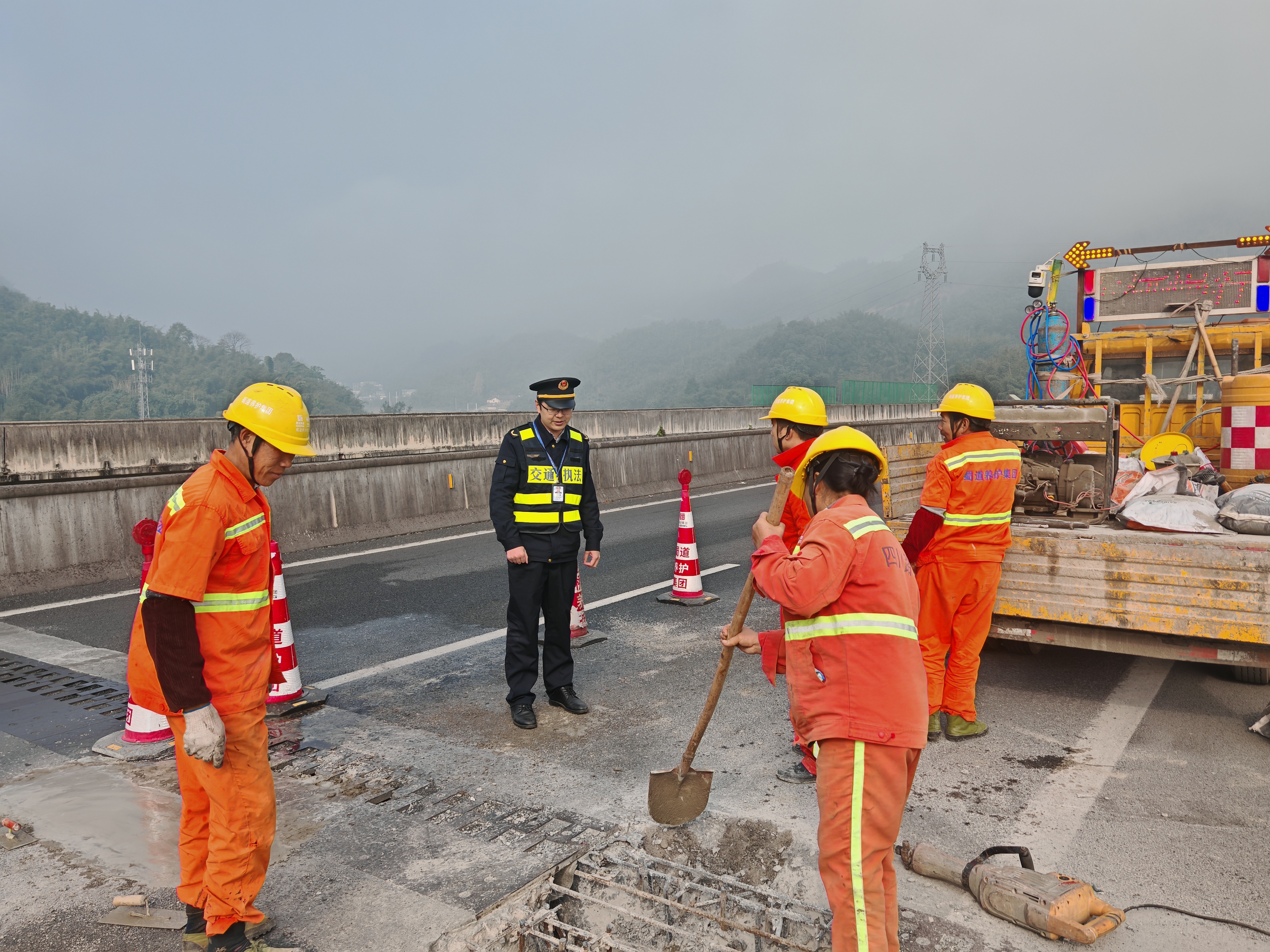 11月28日,交通执法一支队十二大队深入S41遂宜毕高速宜叙段开展冬季养护施工现场检查,重点检查施工作业控制区域设置、安全警示标志标牌摆放、施工人员着装及安全防护措施落实等情况,指出存在的问题及不足,要求施工作业单位严格落实安全生产主体责任,加强冬季施工现场安全管理,严格执行雾天禁止施工规定,规范布设施工作业控制区及警示标志标牌等,强化从业人员安全教育培训,依法依规开展养护施工作业活动,全面提高施工管理规范化水平。