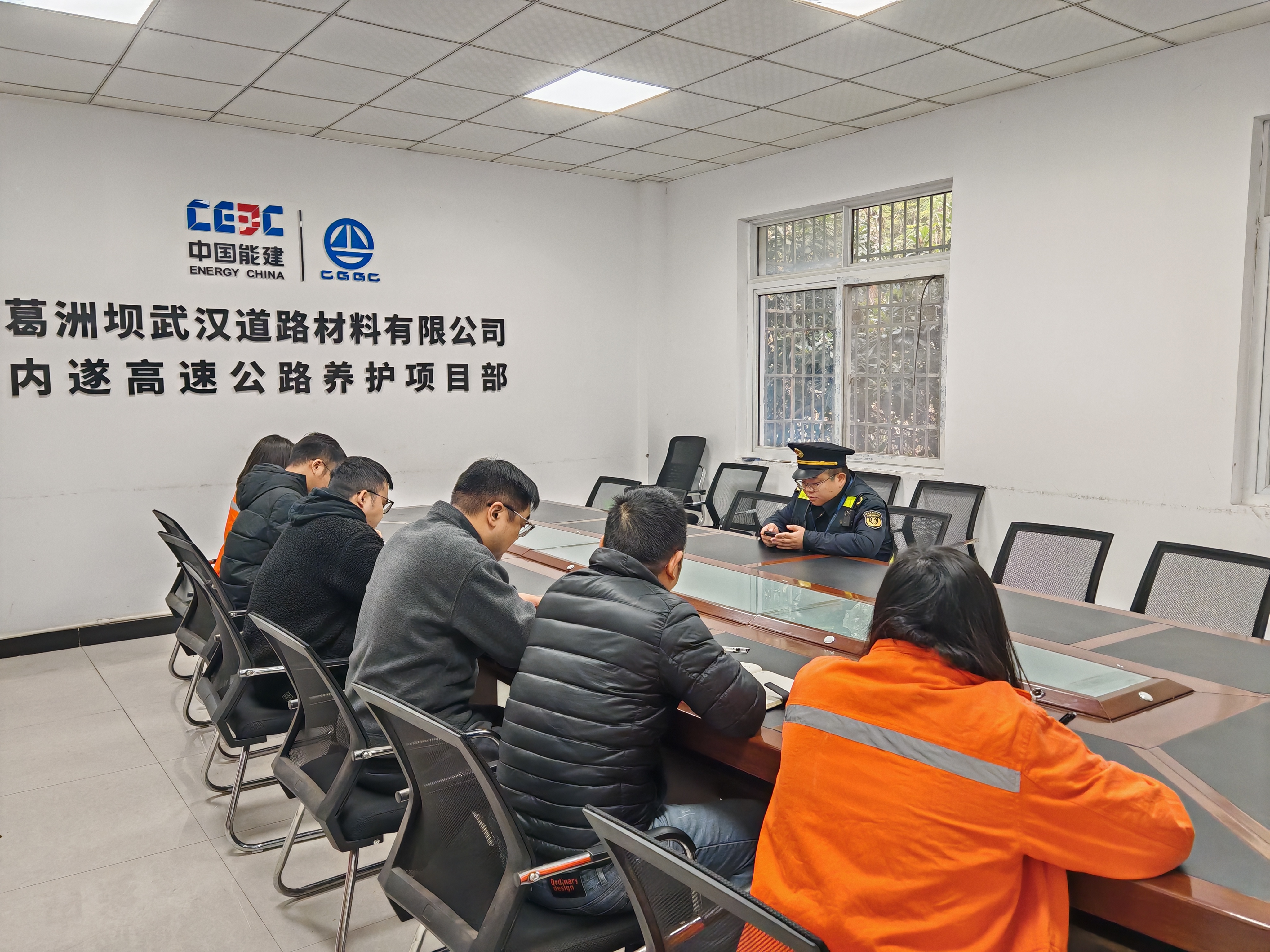 12月12日,交通执法一支队八大队深入葛洲坝武汉道路材料有限公司内遂高速项目部开展安全管理宣传及养护施工座谈交流,传达上级关于加强养护施工作业安全防护管理工作相关要求,并就近期养护施工管理工作进行复盘交流。强调:一要提高安全管理意识,高度重视施工安全管理工作,强化防撞缓冲设备、主动示警设备、个人防护设备在高速公路养护施工应用;二要严格规范施工现场秩序,强化施工人员专业培训,强化作业施工信息发布;三要直面施工现存问题,及时开展复盘总结,确保岁末年初养护施工管理工作安然无虞、平稳推进,为冬季高速公路安全畅通筑牢坚实根基。