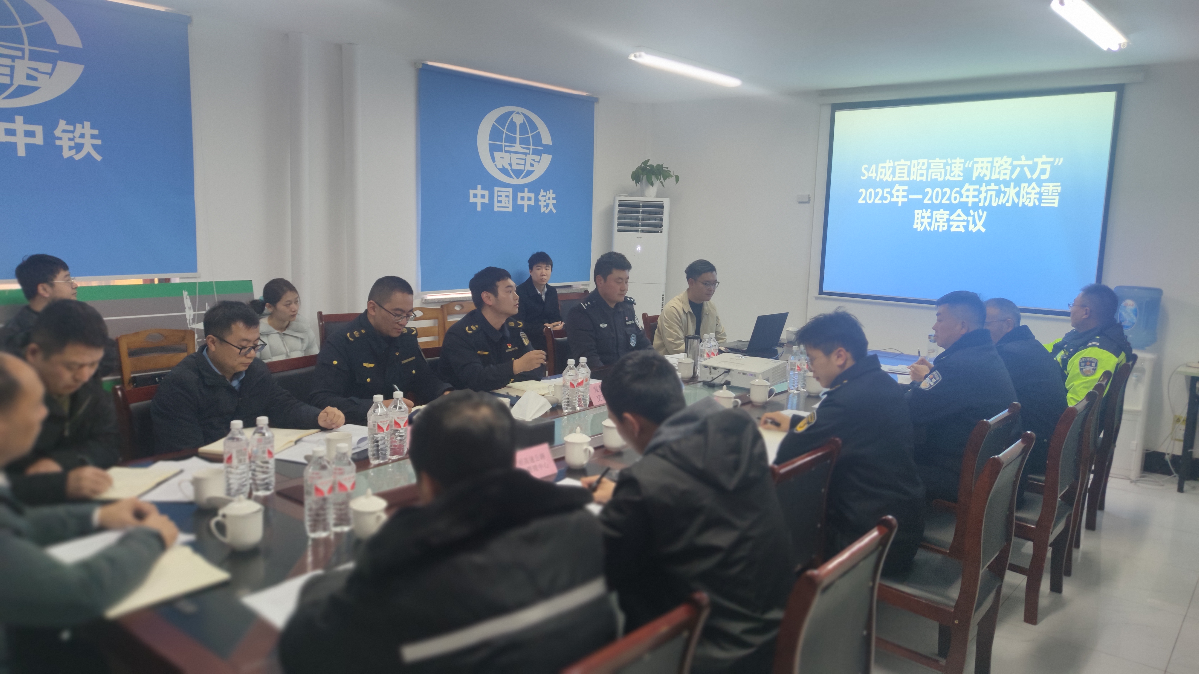 为进一步强化2025年冰雪恶劣天气应对工作,优化邻省协作机制,共同保障好道路的安全畅通,12月12日,交通执法一支队十三大队联合宜彝公司、宜昭公司、两省高速交警和交通执法大队召开2025年S4成宜昭高速公路“两路六方”抗冰除雪联席会议。会上,高速公路运营公司分别就两路抗冰除雪相关准备情况做了汇报,各单位总结了2024年经验与不足,同时围绕今年两省冬季抗冰除雪管控、应急保畅工作等方面进行了研讨,并达成共识:一是持续强化联动机制,优化联络沟通交流平台构建,明确各单位最新负责人和联络人,本着“下好一盘棋”,加强沟通交流,根据需要不定期组织会商研判;二是保持信息实时畅通,实现预警处置闭环,利用信息化平台,实时共享路面温度监测、视频监控、巡逻发现、车辆滞留、物资消耗、处置进度等信息,实现“一处发现、各方皆知、联动处置”;三是进一步优化联动处置预案,针对重点易结冰路段和枢纽互通,明确分流点、指挥岗、引导标志设置位置及各方职责,确保省际车流平稳过渡,避免长时间、长距离拥堵。