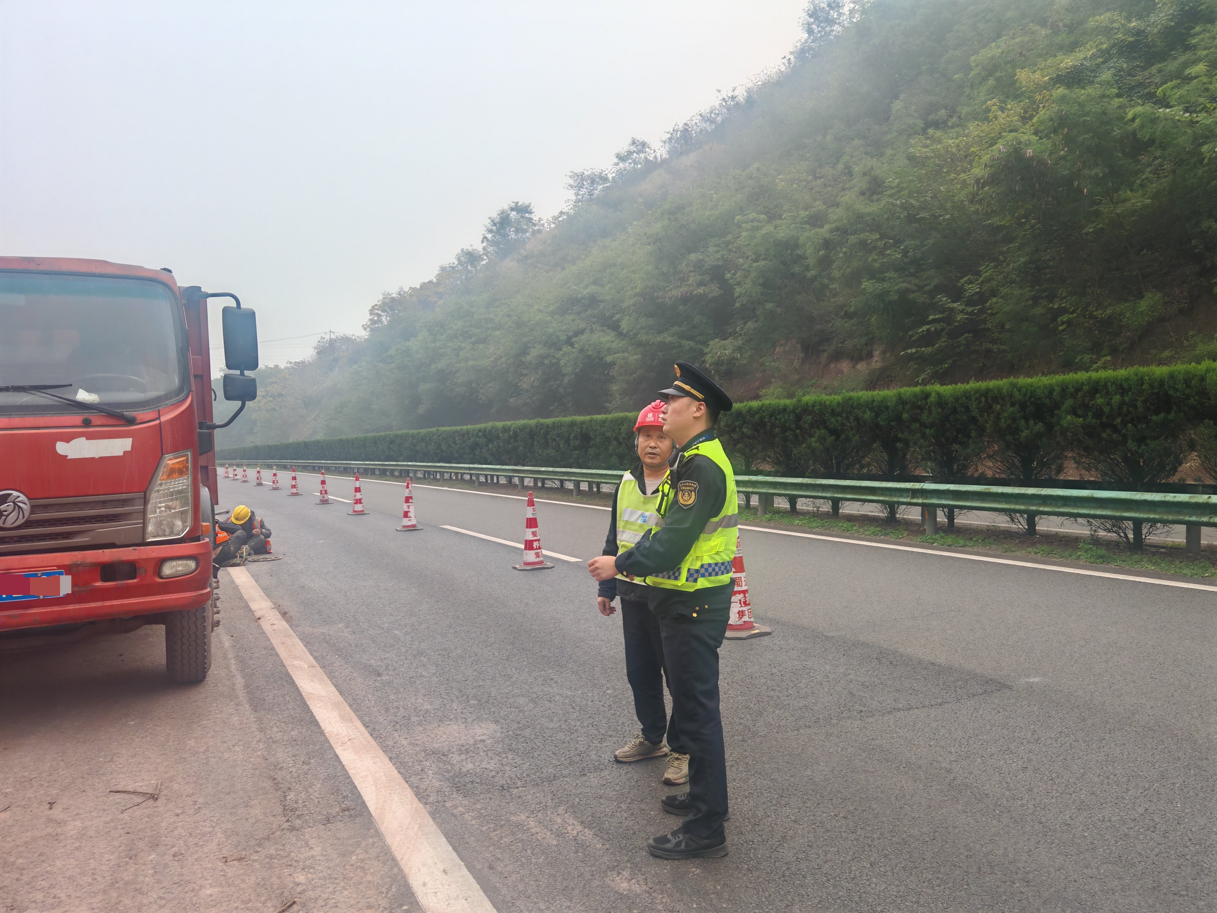 12月9日,交通执法四支队三大队到G4215蓉遵高速公路内自段开展施工安全监管工作,重点检查施工作业控制区域设置、安全标志标牌摆放及安全防护措施落实等情况,强调:要规范现场布设,施工单位要严格按照规范设置警示标志、锥桶等交通导改设施,确保间距合理、标识清晰,提前引导车辆有序通行;要强化人员防护,明确施工人员必须按规定佩戴安全帽、反光背心等防护装备,严禁未做好防护进入作业区域;要严控施工流程,督促施工方合理规划施工时段与作业范围,避免高峰时段占道施工,杜绝违规操作、超范围施工等行为;要健全应急机制,施工单位要进一步完善应急预案,配备应急物资,一旦发生突发情况,第一时间配合执法部门做好交通疏导与处置工作。