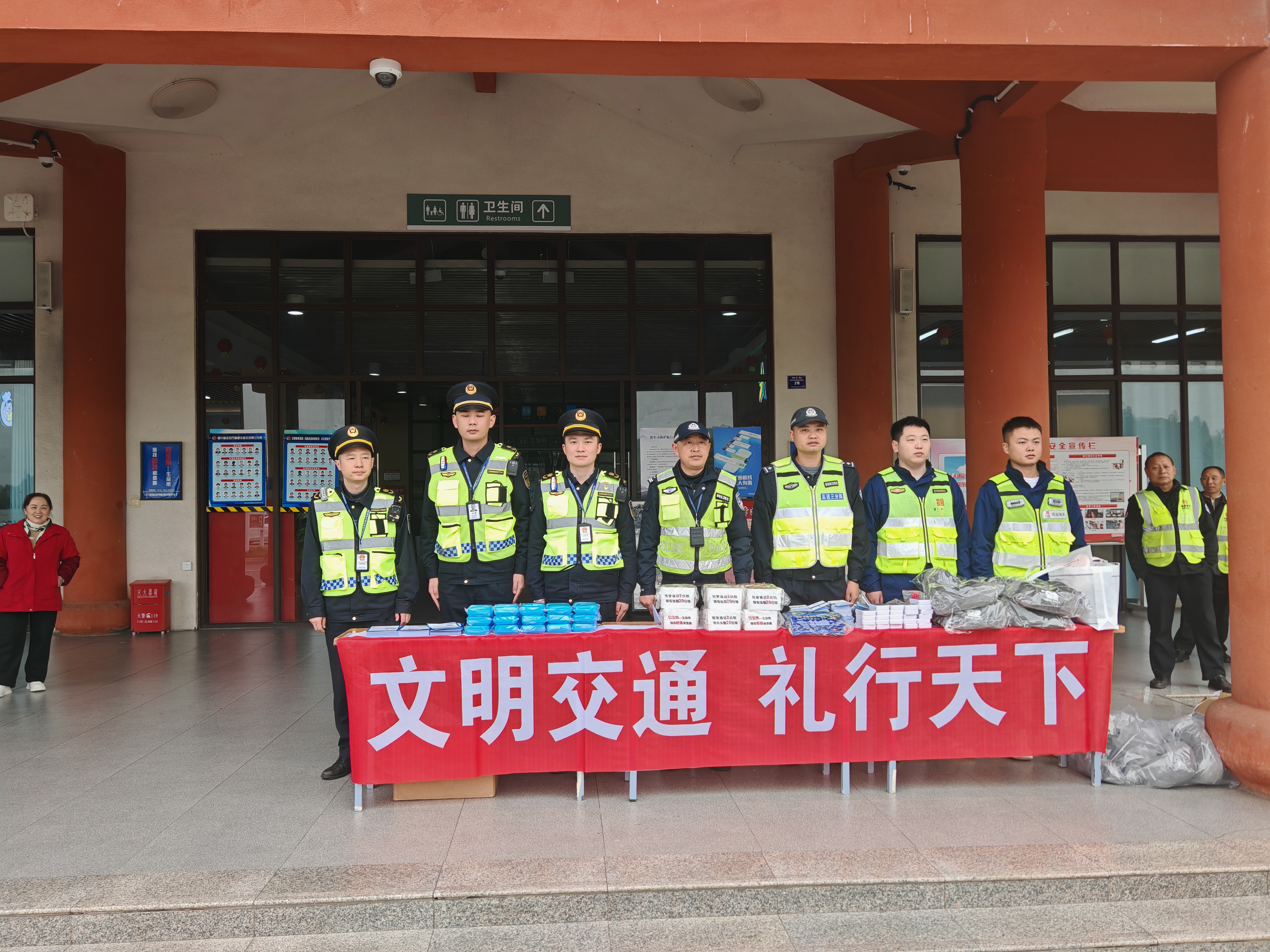 近日,交通执法四支队四大队联合高速交警、营运公司深入S4成宜昭高速公路汪洋服务区开展“文明交通 礼行天下”志愿服务活动,依托便民服务点免费向过往司乘人员提供开水及线路咨询等服务,同时广泛宣传高速公路法律法规及行车安全知识,引导广大司乘人员树牢遵纪守法意识,共同营造安全舒适、温馨和谐高速公路出行环境。