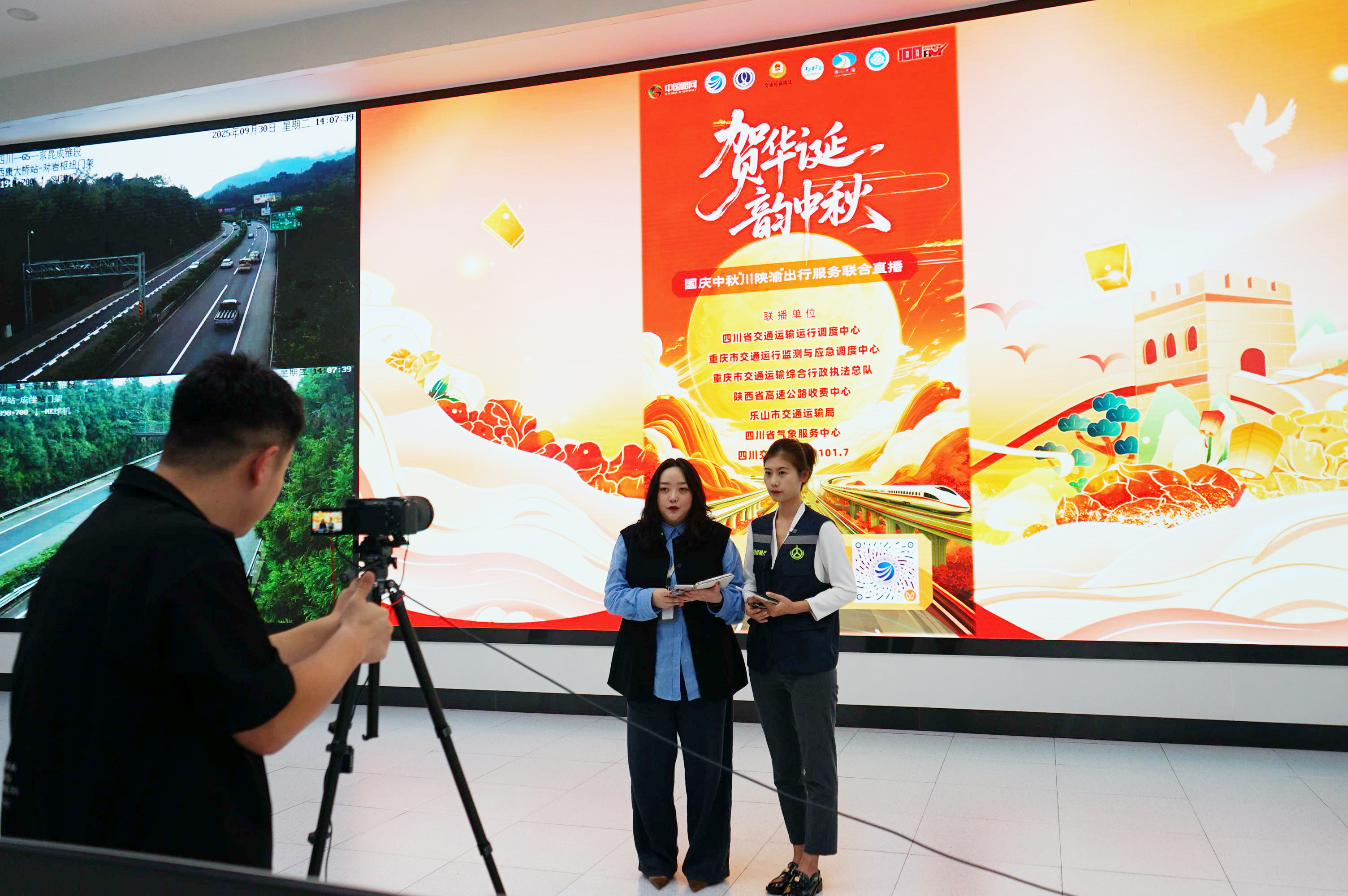 为护航国庆中秋假期公众出行,运调中心联合重庆、陕西、乐山交通,四川气象、川观新闻、四川交通广播等单位,在出行前、出行中、返程等高峰时段,分别开展《川陕渝出行服务联动直播》、《川观新闻空地联动直击国庆中秋双节出行路况》、《主播探路 假期畅行》融媒体直播。为确保直播服务的专业性与全面性,各单位详细介绍了高速公路枢纽、收费站、服务区、热门景区周边道路等,实时采集路况动态、管制信息、便民举措等权威内容,为直播提供权威数据与决策支撑,切实将“服务为民”落到实处。