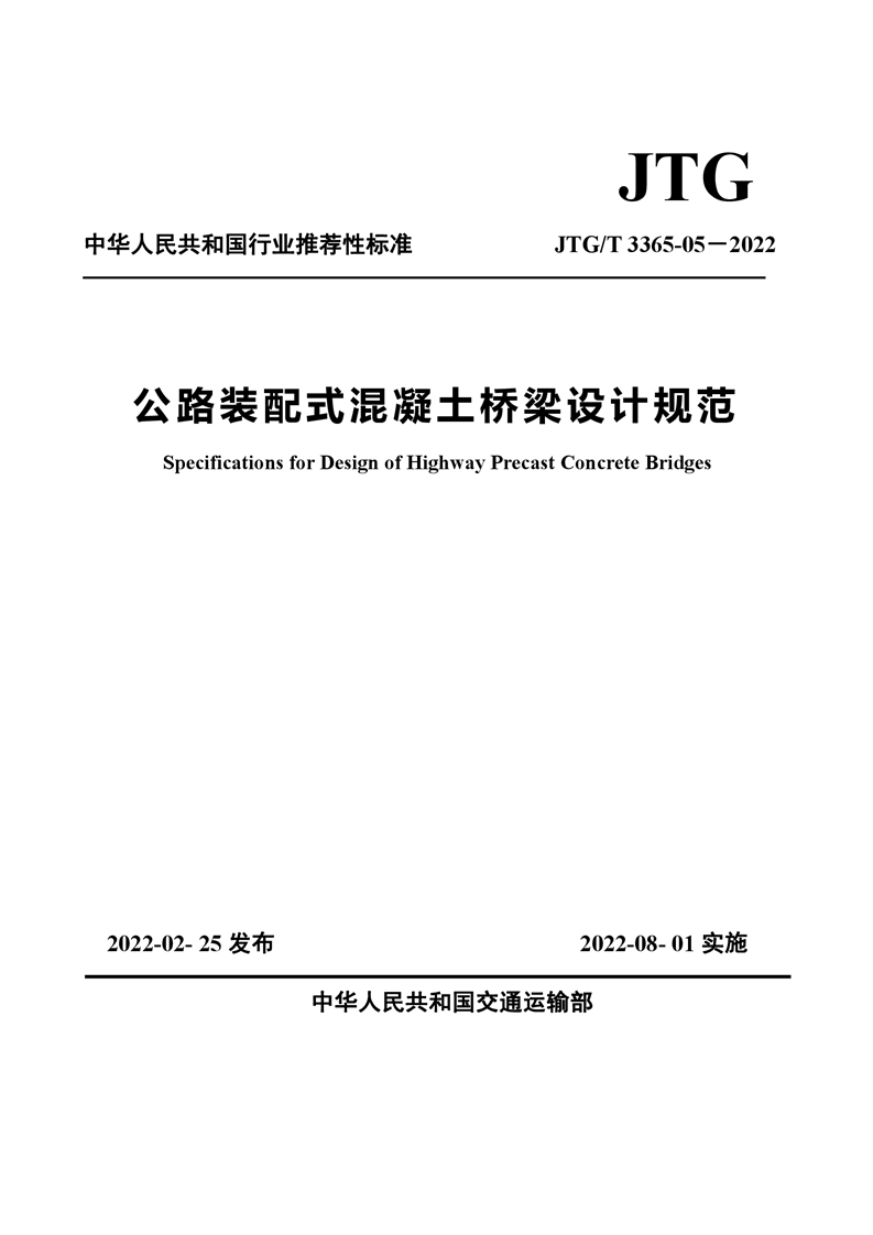 《公路装配式混凝土桥梁设计规范》(JTG-T-3365-05-2022)