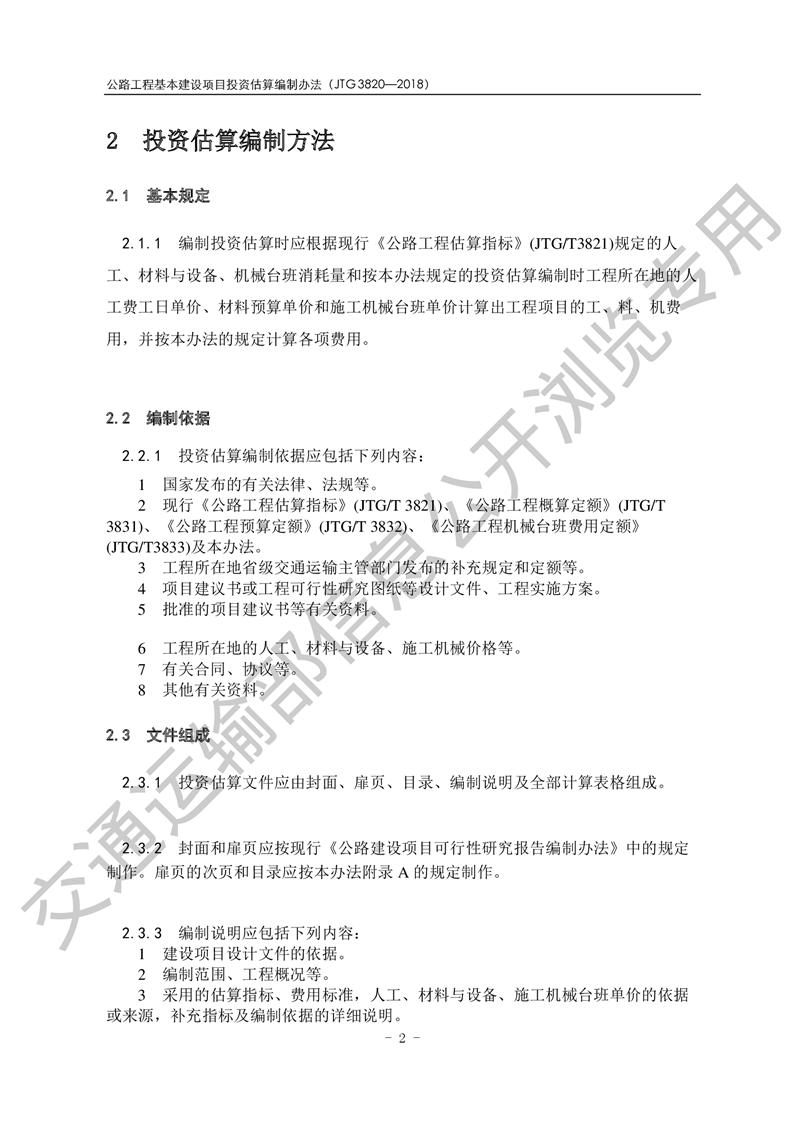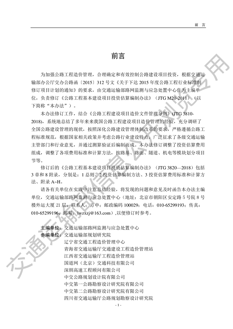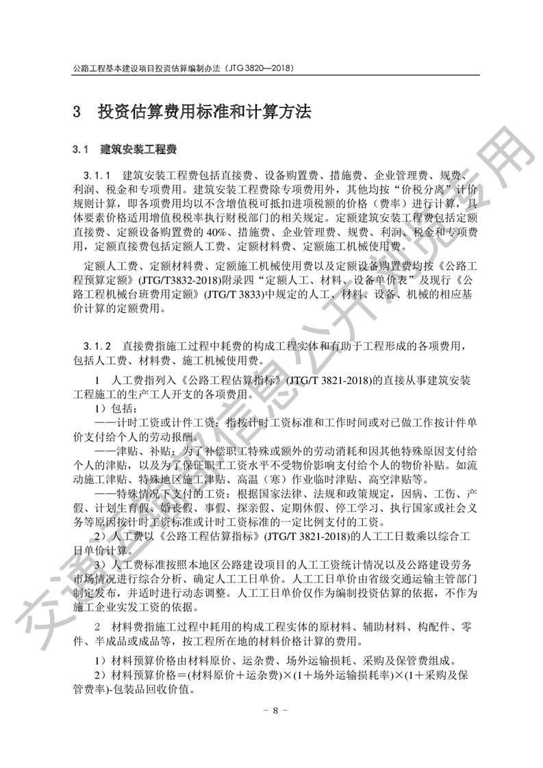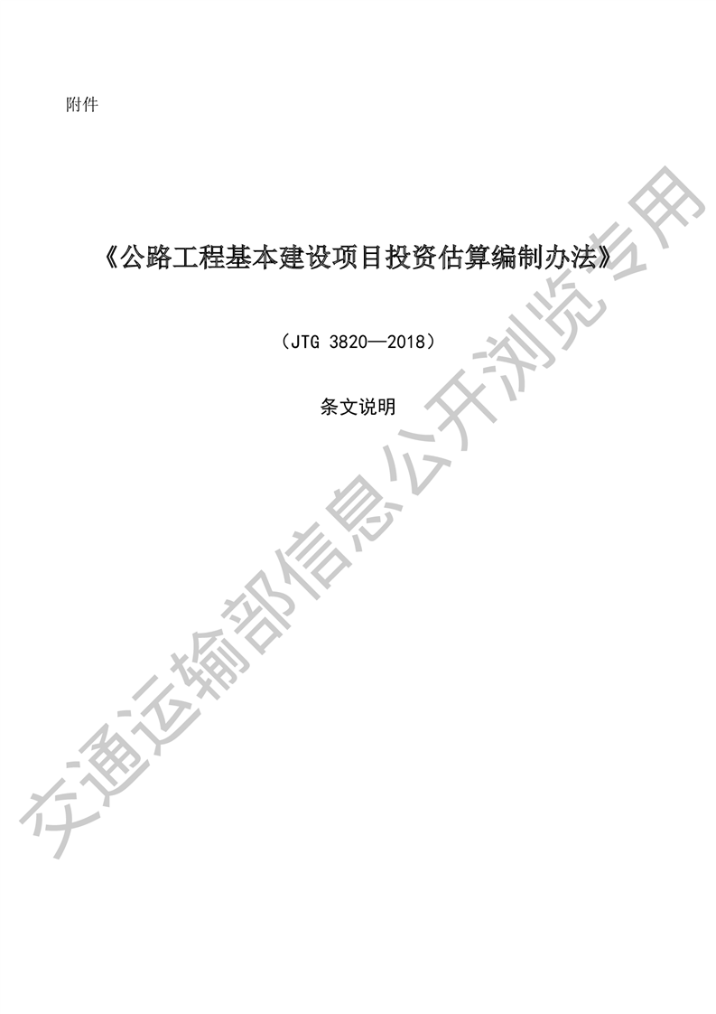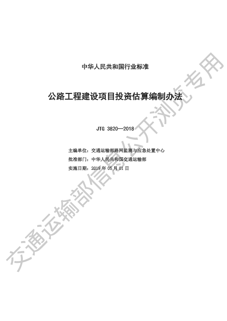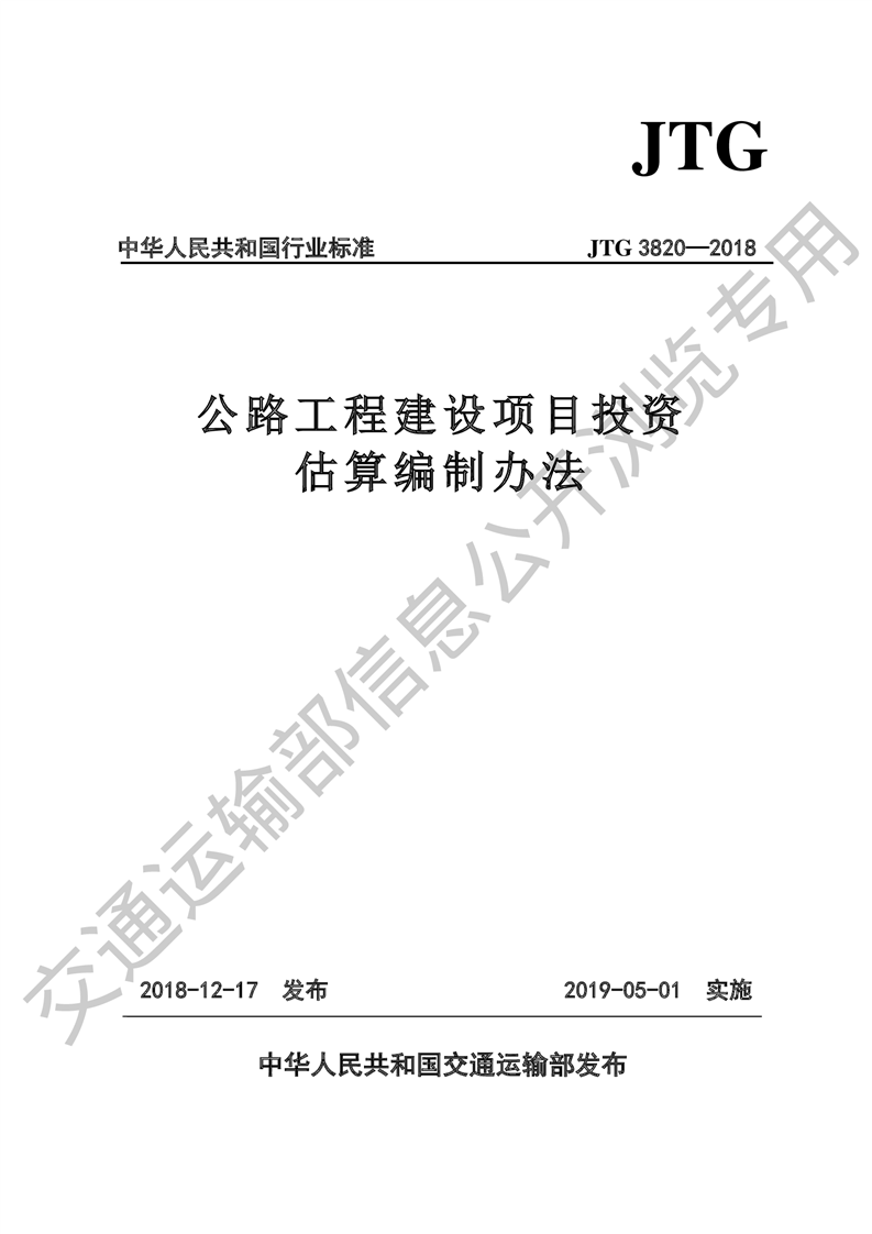 《公路工程建设项目投资估算编制办法》 (JTG 3820-2018)