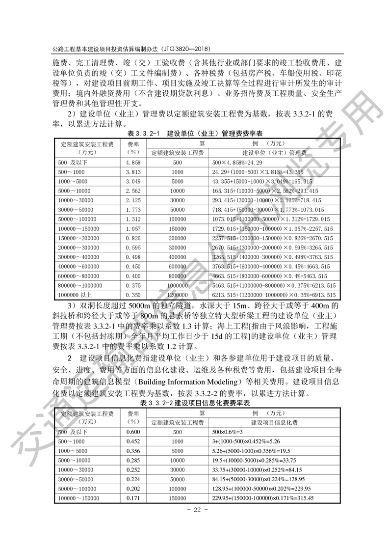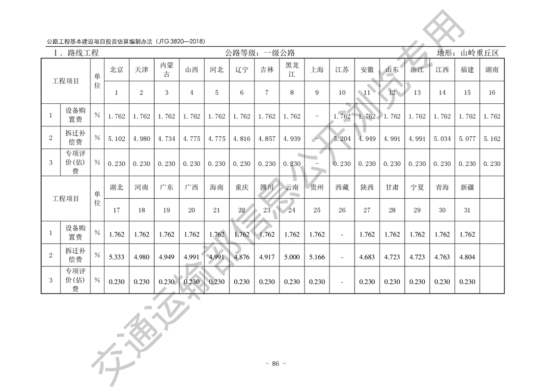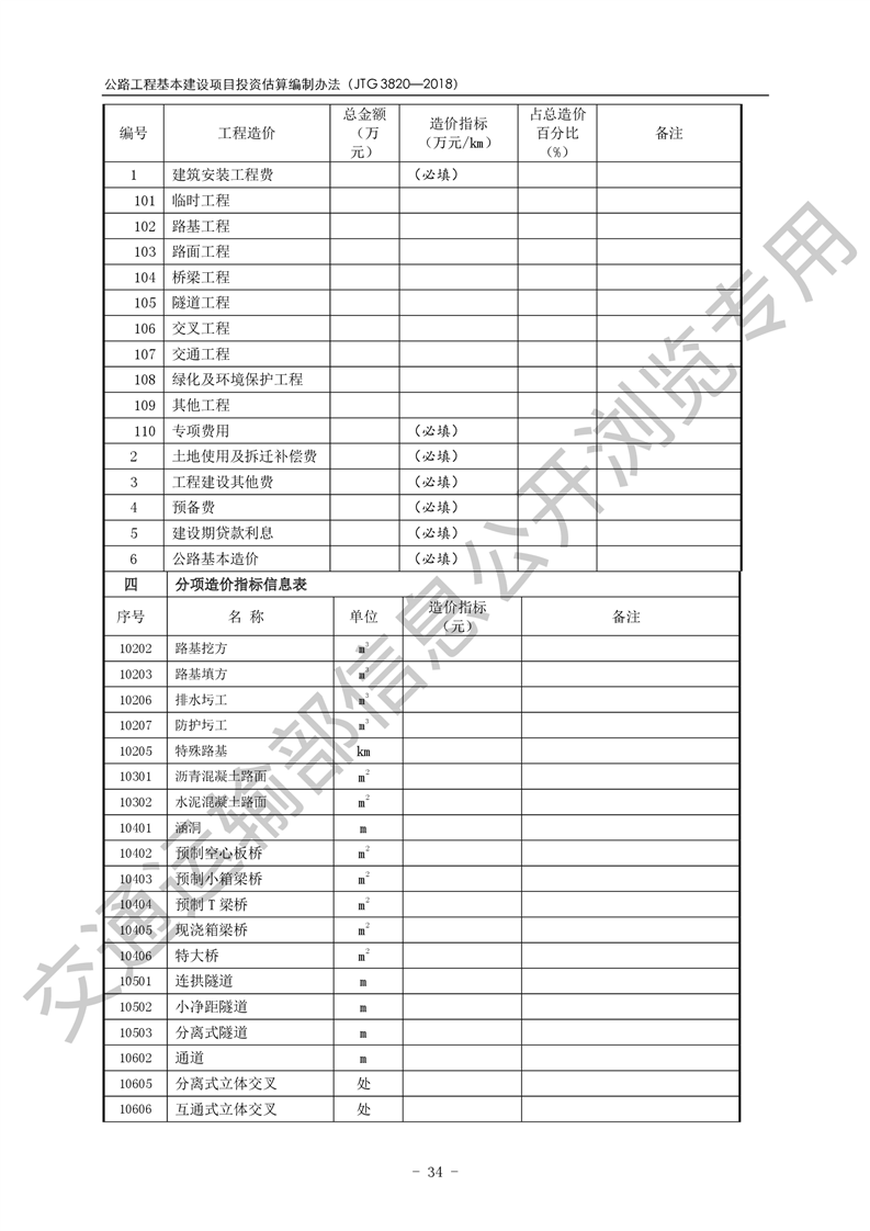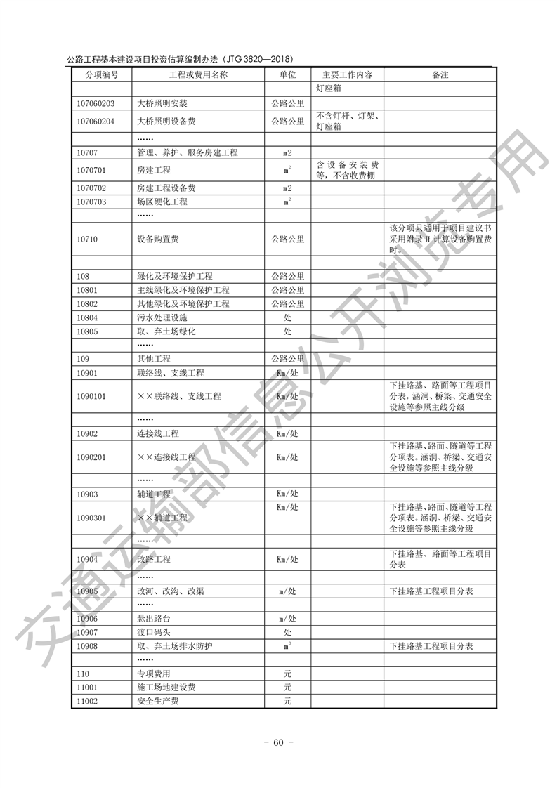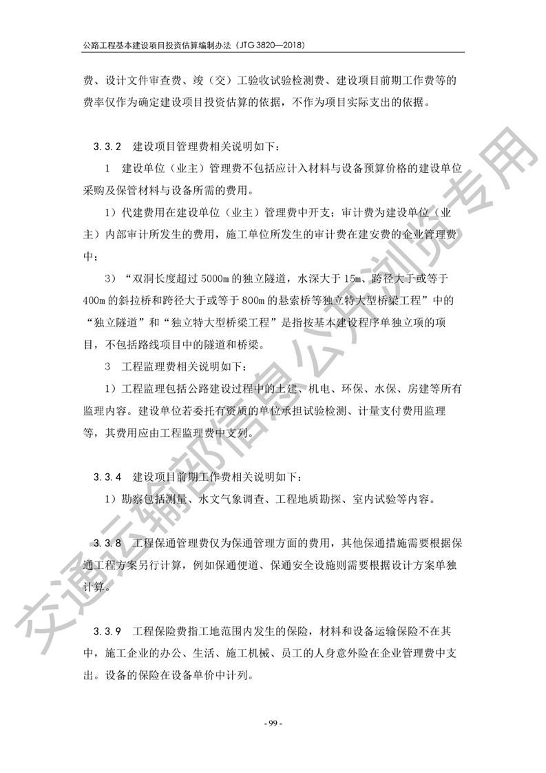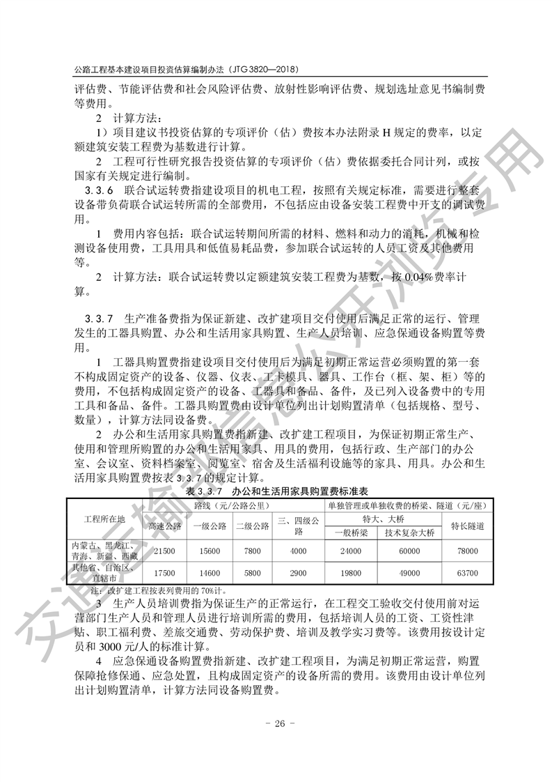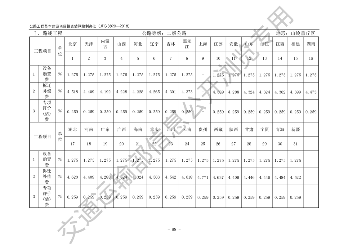 《公路工程建设项目投资估算编制办法》 (JTG 3820-2018)