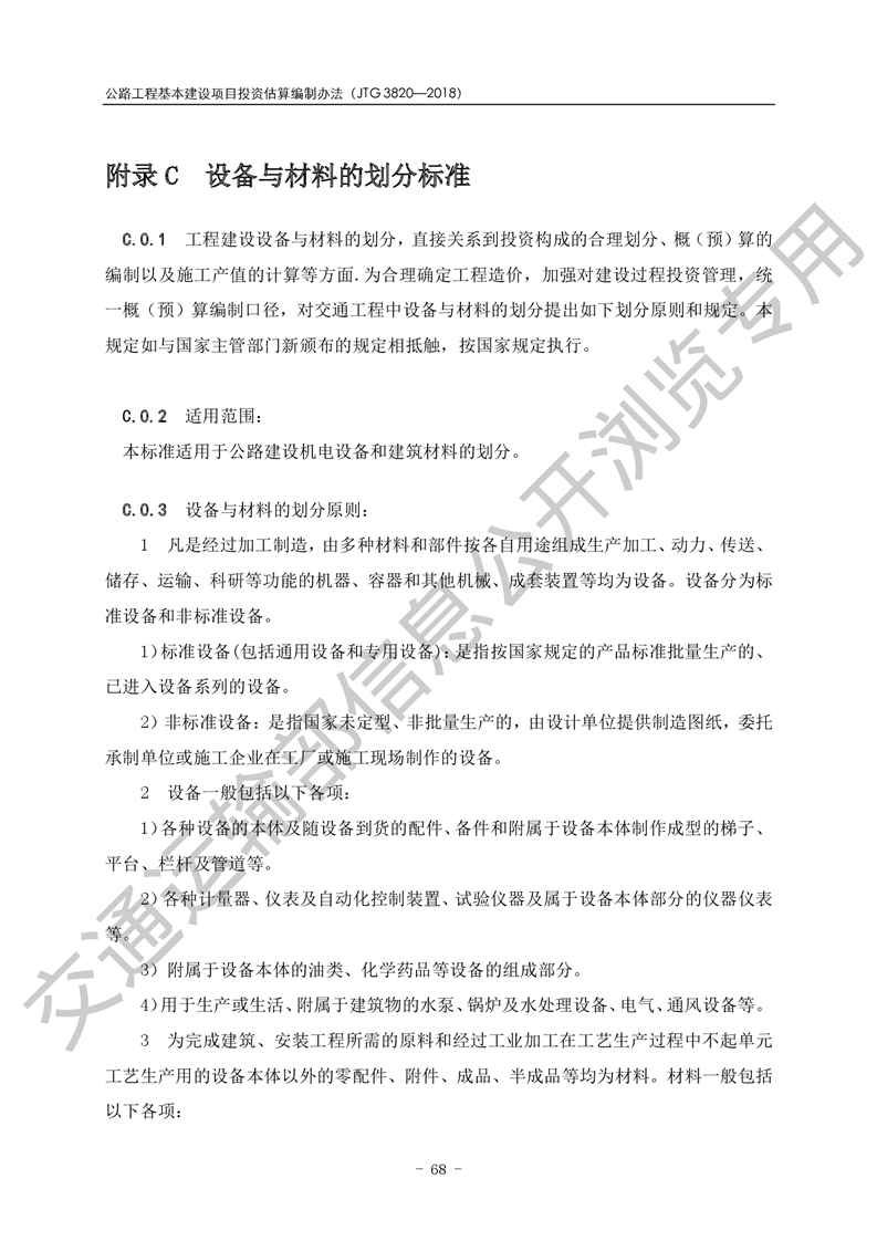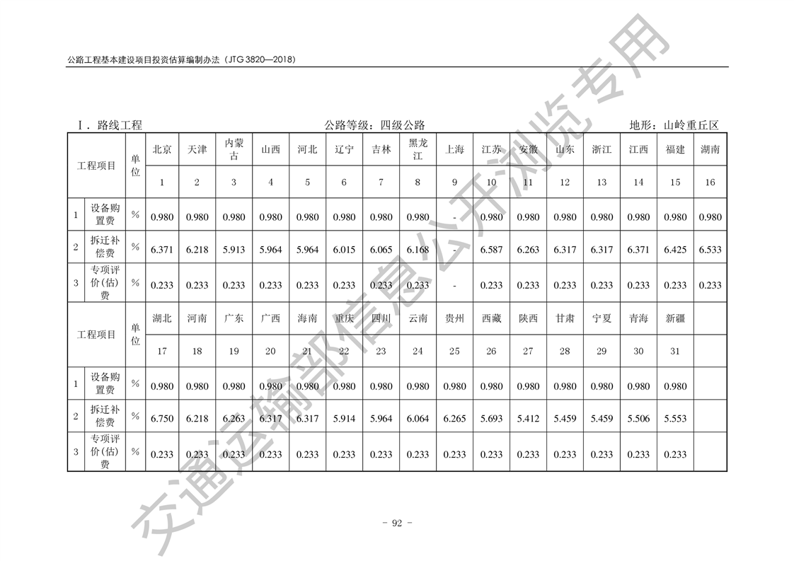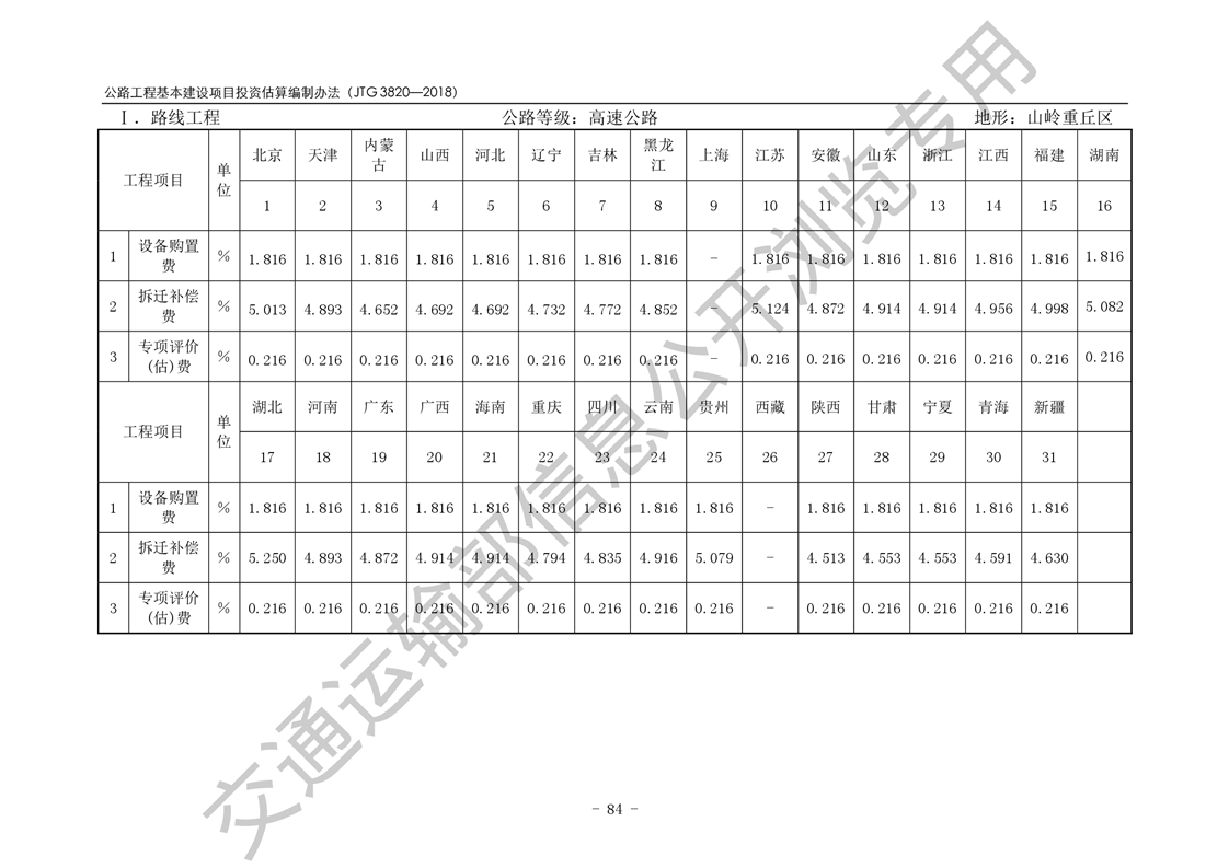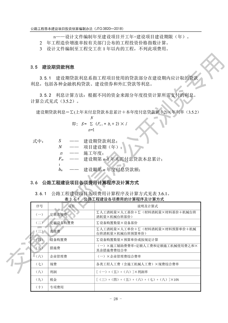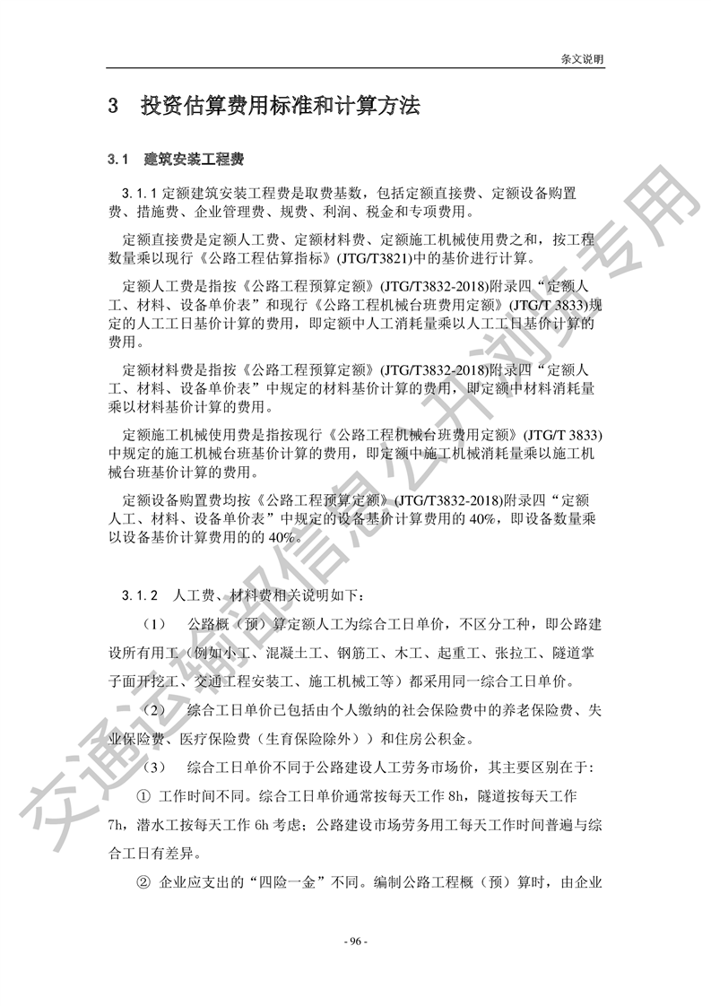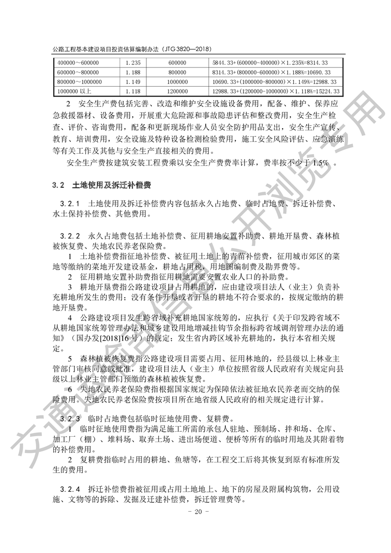 《公路工程建设项目投资估算编制办法》 (JTG 3820-2018)