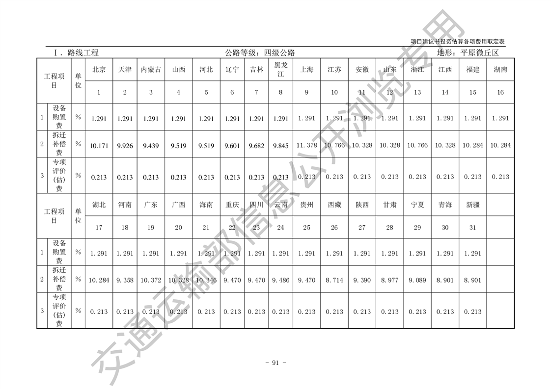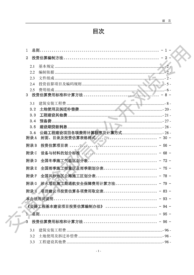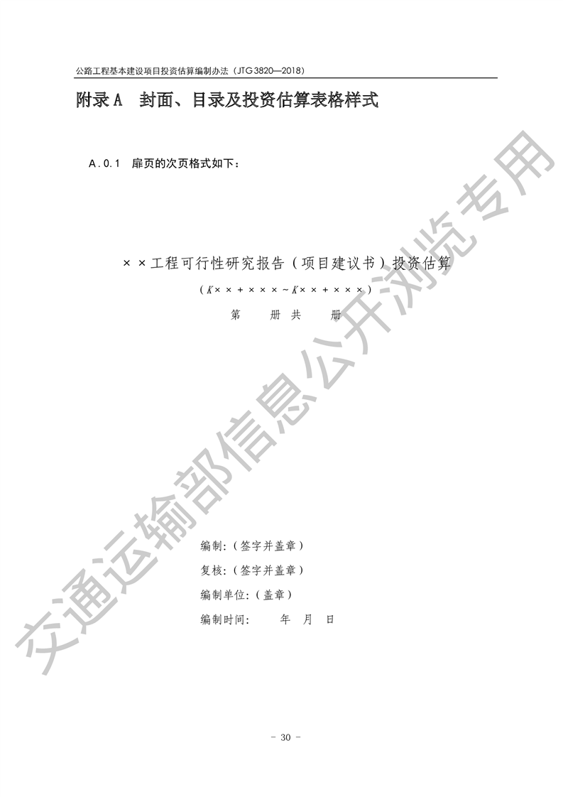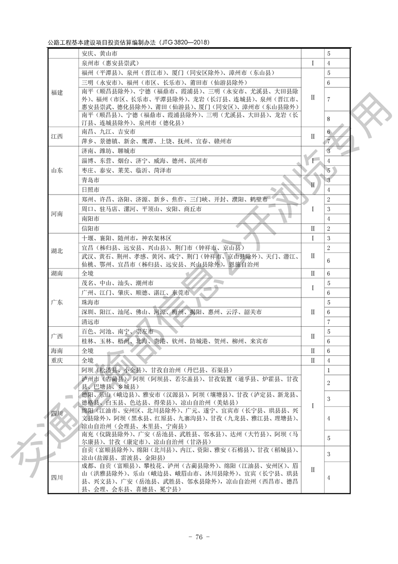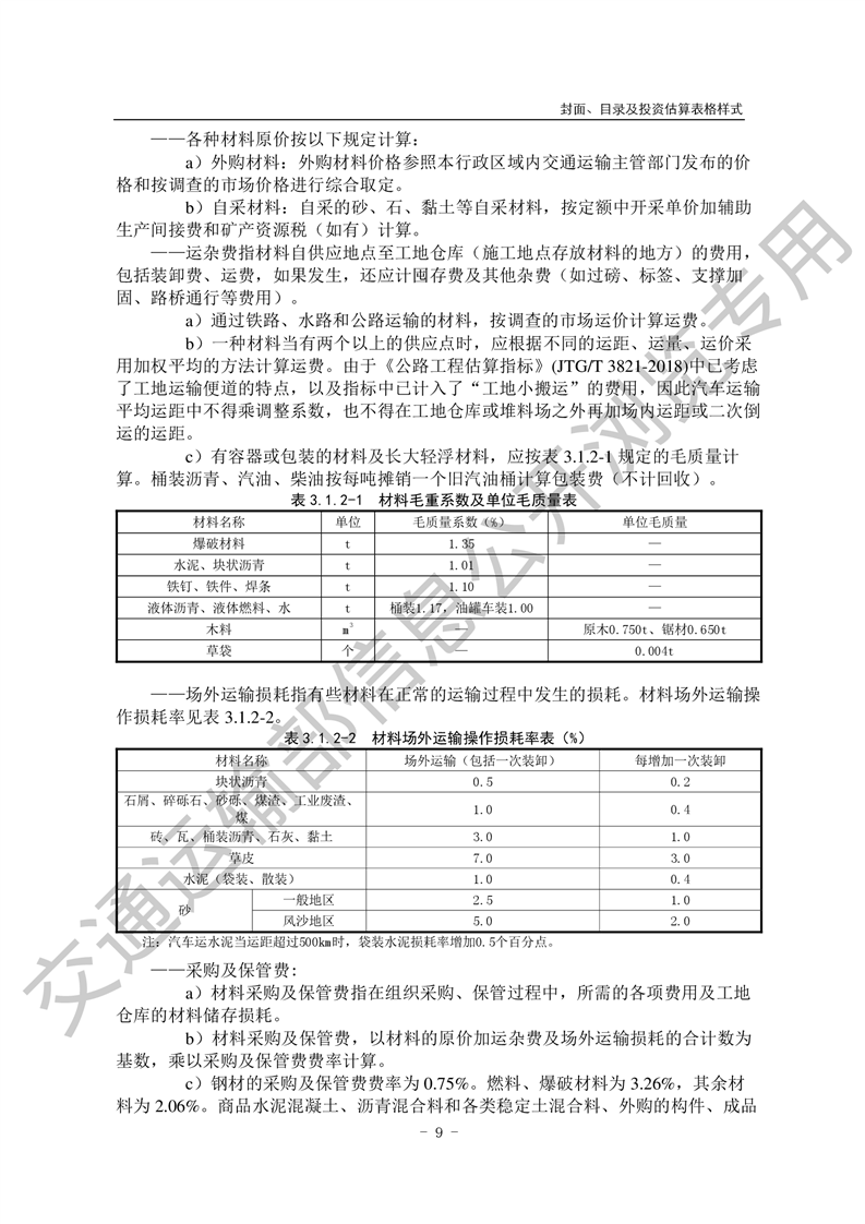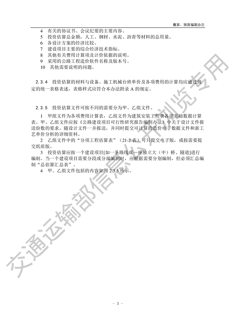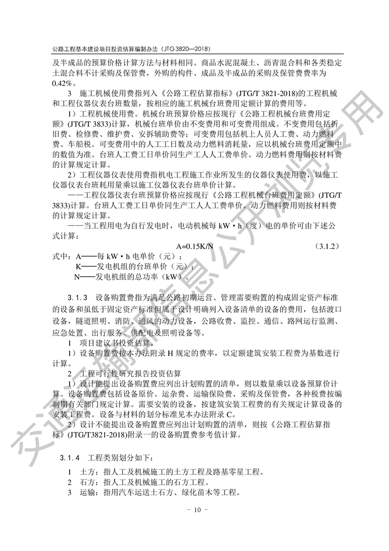 《公路工程建设项目投资估算编制办法》 (JTG 3820-2018)