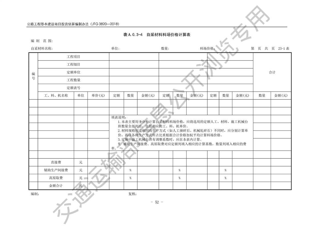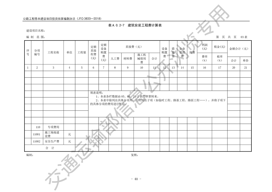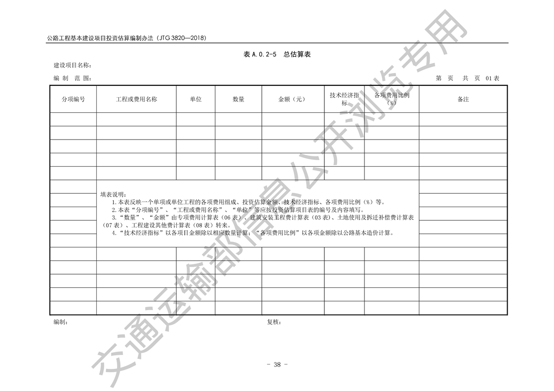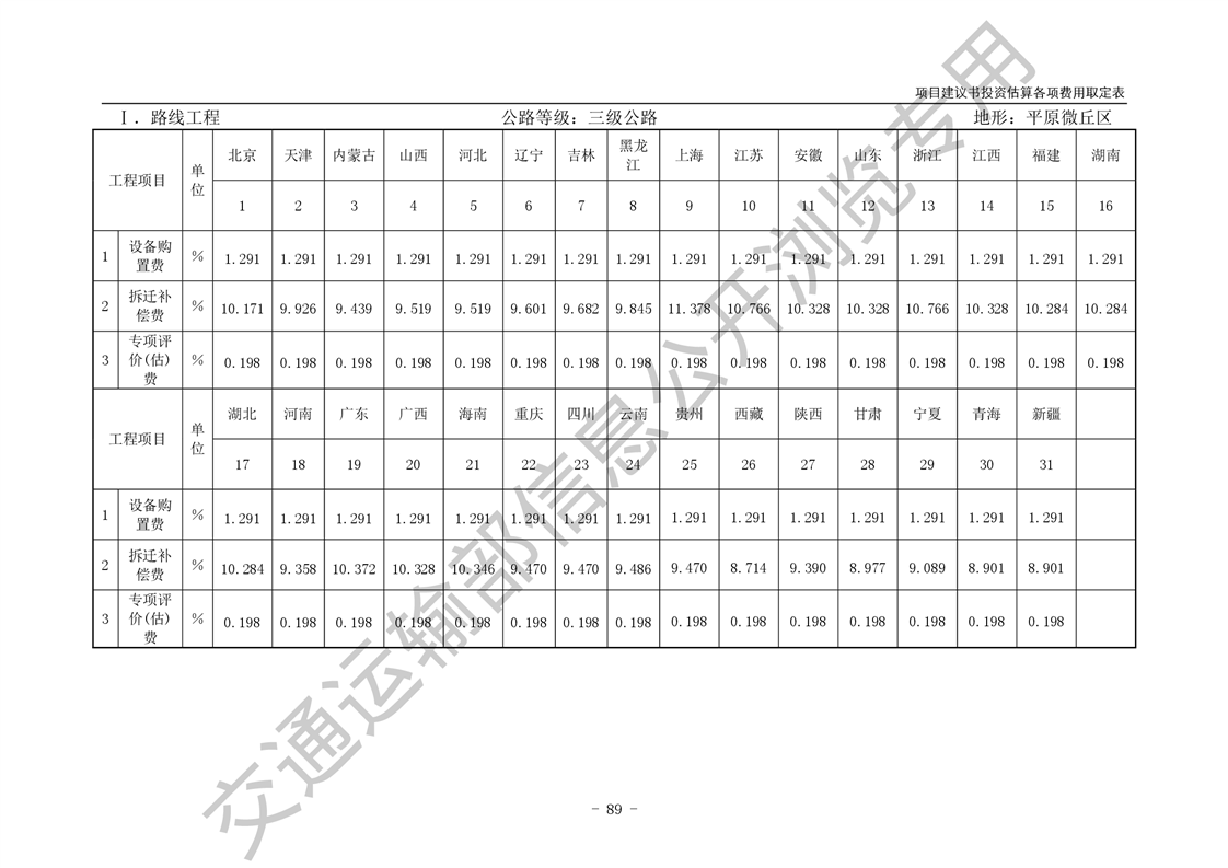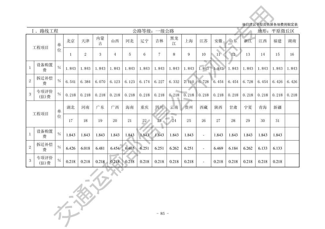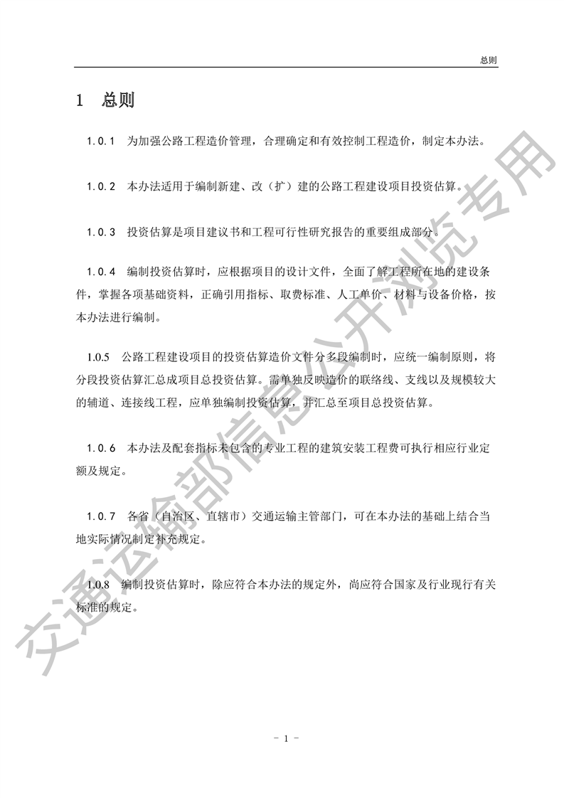 《公路工程建设项目投资估算编制办法》 (JTG 3820-2018)